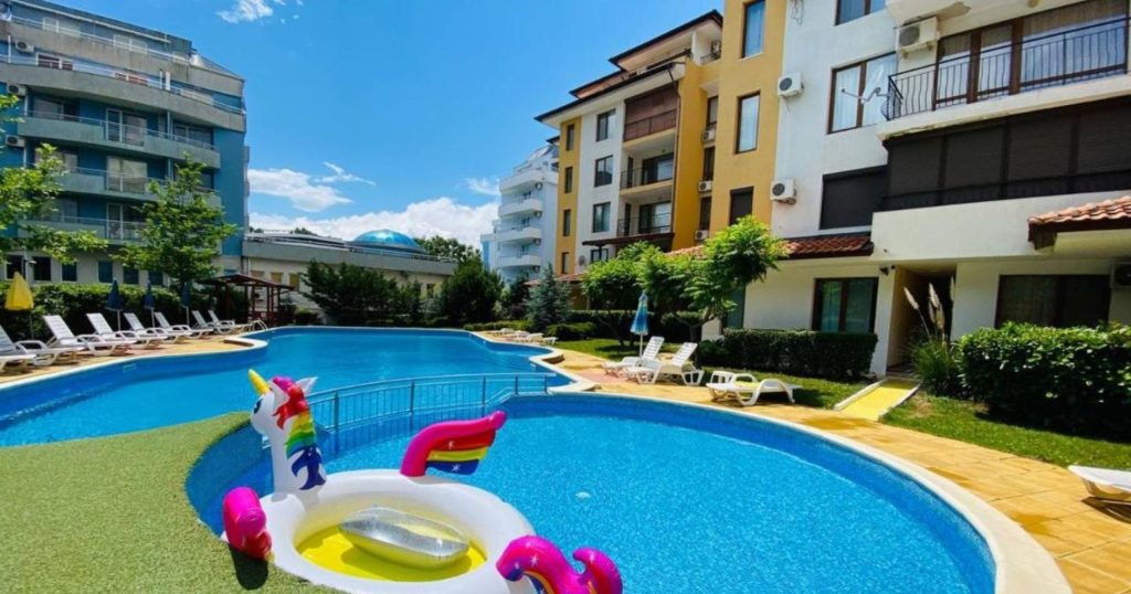 Diamond Bay (Даймонд Бей) — это жилой комплекс, расположенный в западной части курорта Солнечный Берег, у подножия гор Стара Планина, в тихом и озеленённом районе. Комплекс сочетает спокойную атмосферу и удобное расположение для отдыха и проживания.