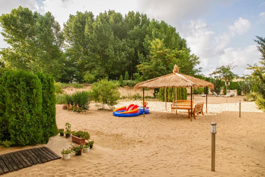 Здание выполнено в стиле болгарского Возрождения с элементами средиземноморской архитектуры. Конструкция из кирпича с отделкой камнем и деревом гармонично вписывается в природный ландшафт и располагается непосредственно рядом с дюнами и пляжем.