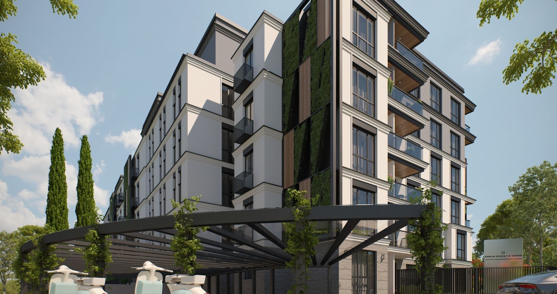 Эмилия Романа Верде (Emilia Romana Verde) сочетает современные архитектурные решения с продуманной организацией пространства, включая дополнительные кладовые помещения площадью до 5 кв.м. и благоустроенные зелёные зоны.