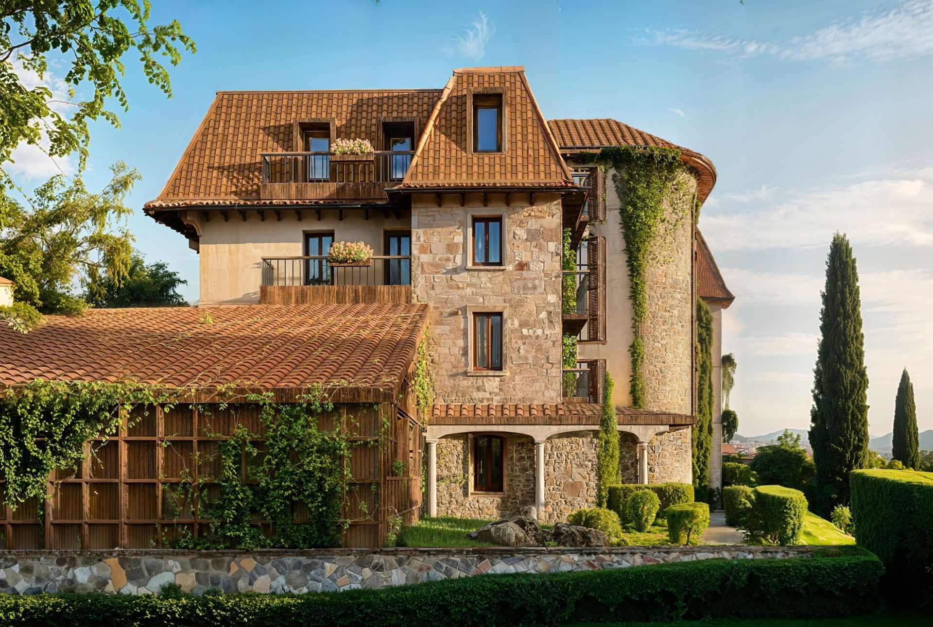 Архитектура комплекса выполнена в современном стиле с использованием качественных и энергоэффективных материалов, что обеспечивает высокий уровень комфорта и долговечности.