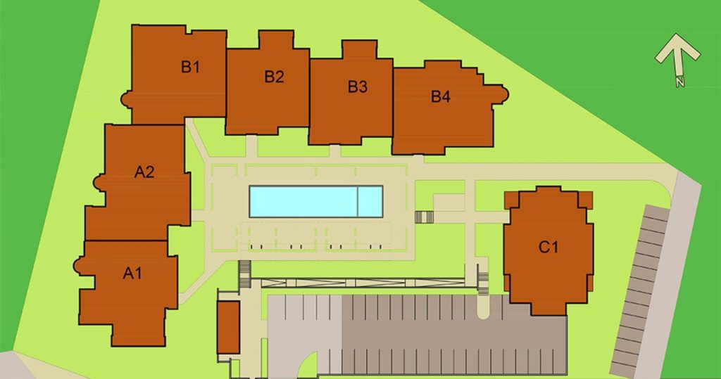 Территория Fort Noks Green Suites (Грин Форт Сьютс) благоустроена и продумана для комфортного проживания. Внутренний двор оформлен зелёными насаждениями, аллеями и зонами отдыха. В центре комплекса расположен бассейн с зоной для загара и отдельной детской секцией.