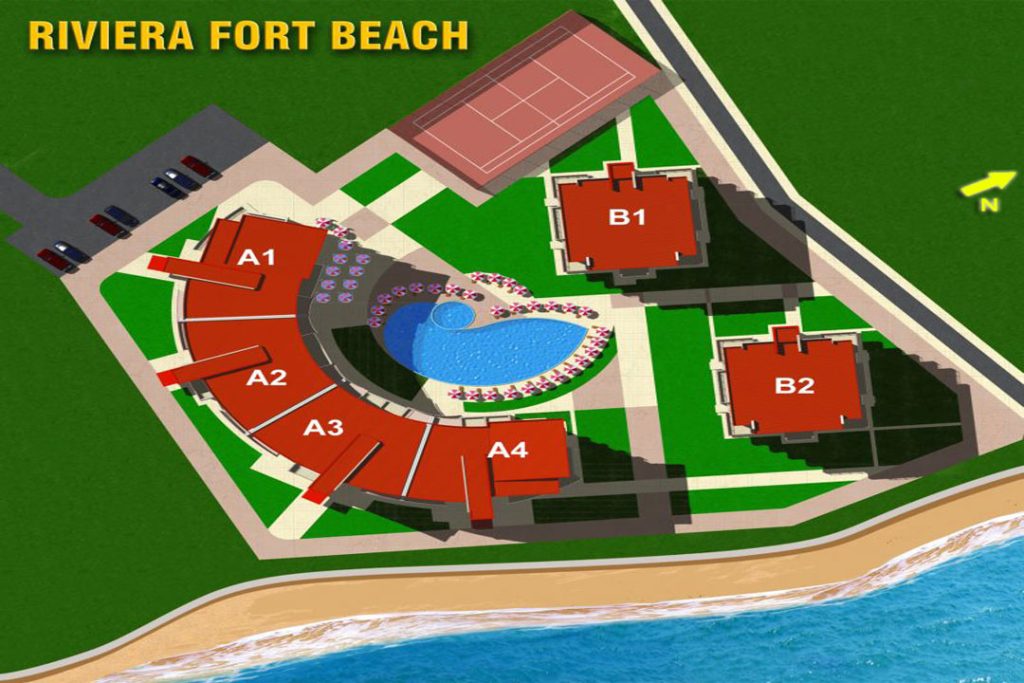 Комплекс «Ривиера Форт Бич» (Fort Noks Riviera) включает несколько зданий с продуманной архитектурой и функциональными планировками. Предлагаются студии и апартаменты с 1–2 спальнями, полностью оборудованные для комфортного проживания или отдыха.