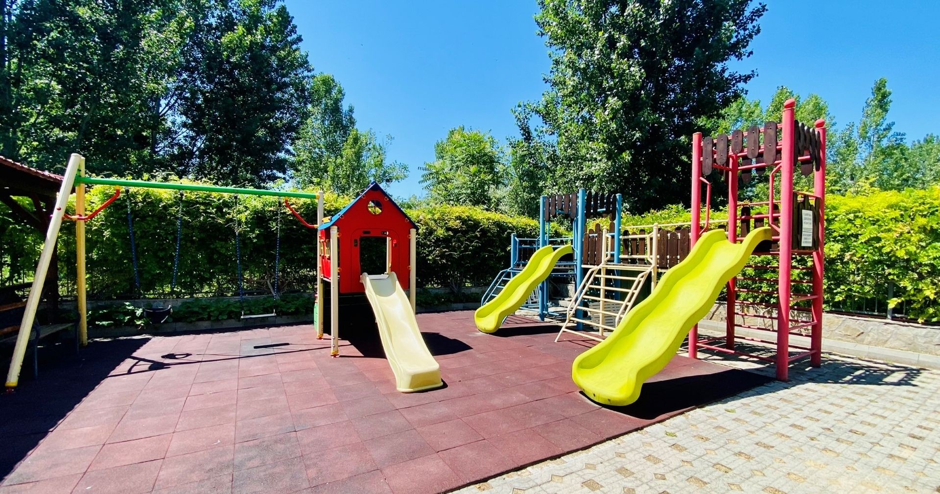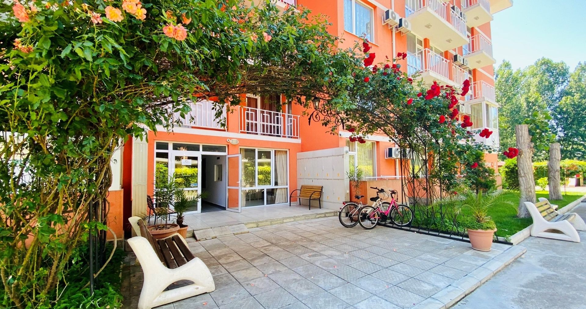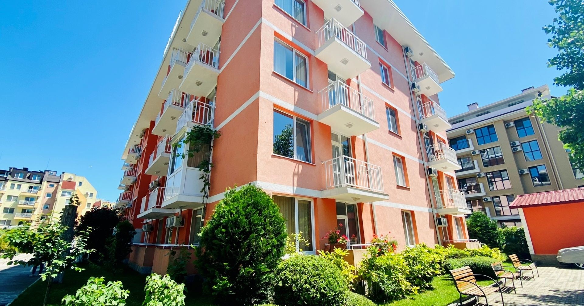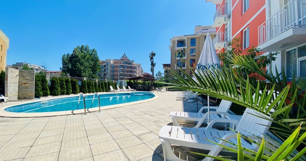 Рядом находятся парки и детские площадки, а расстояние до исторического города Несебр составляет около 2,5 км. До центра Солнечного Берега можно дойти пешком за 20–25 минут.