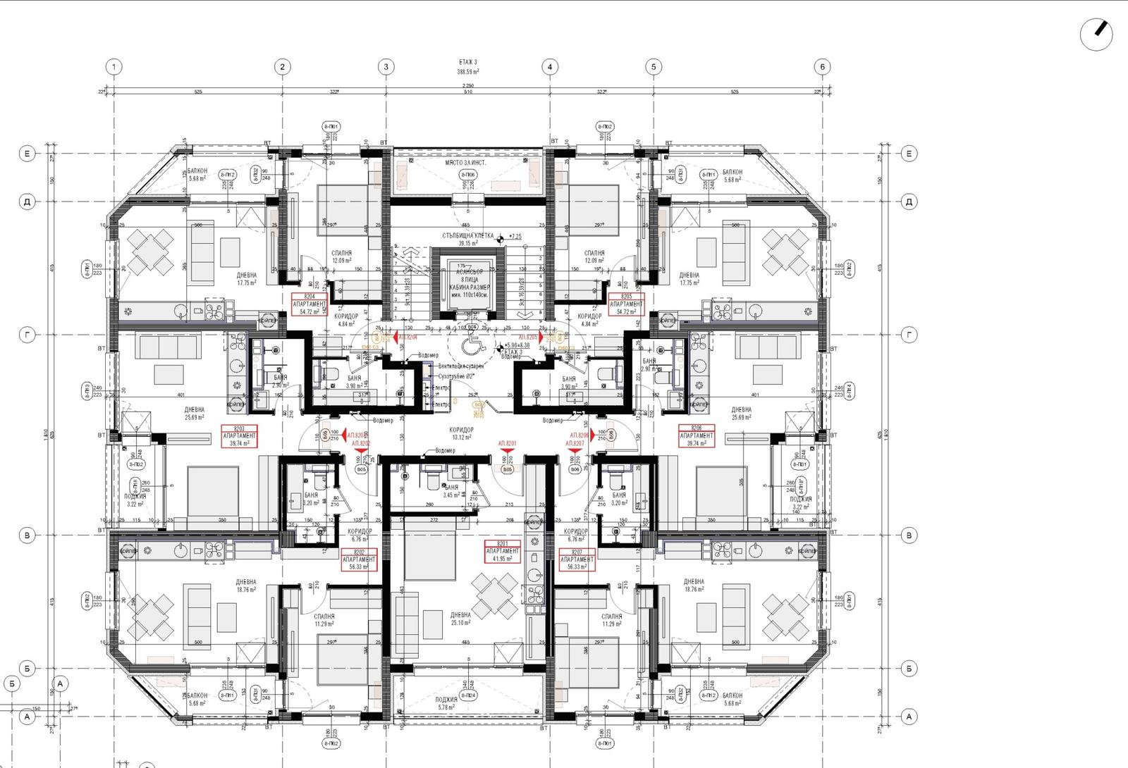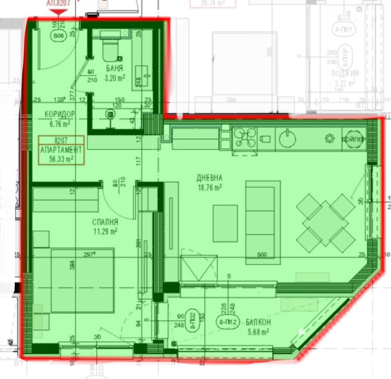 • Общая площадь: 64.56 м²