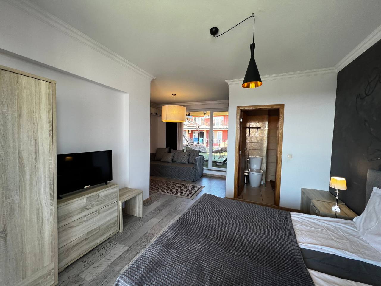 Эта квартира с тремя спальнями на Солнечном берегу — редкая возможность приобрести просторное жильё у моря с выгодными условиями оплаты. Отличный выбор для личного проживания и инвестиций в курортную недвижимость Болгарии.