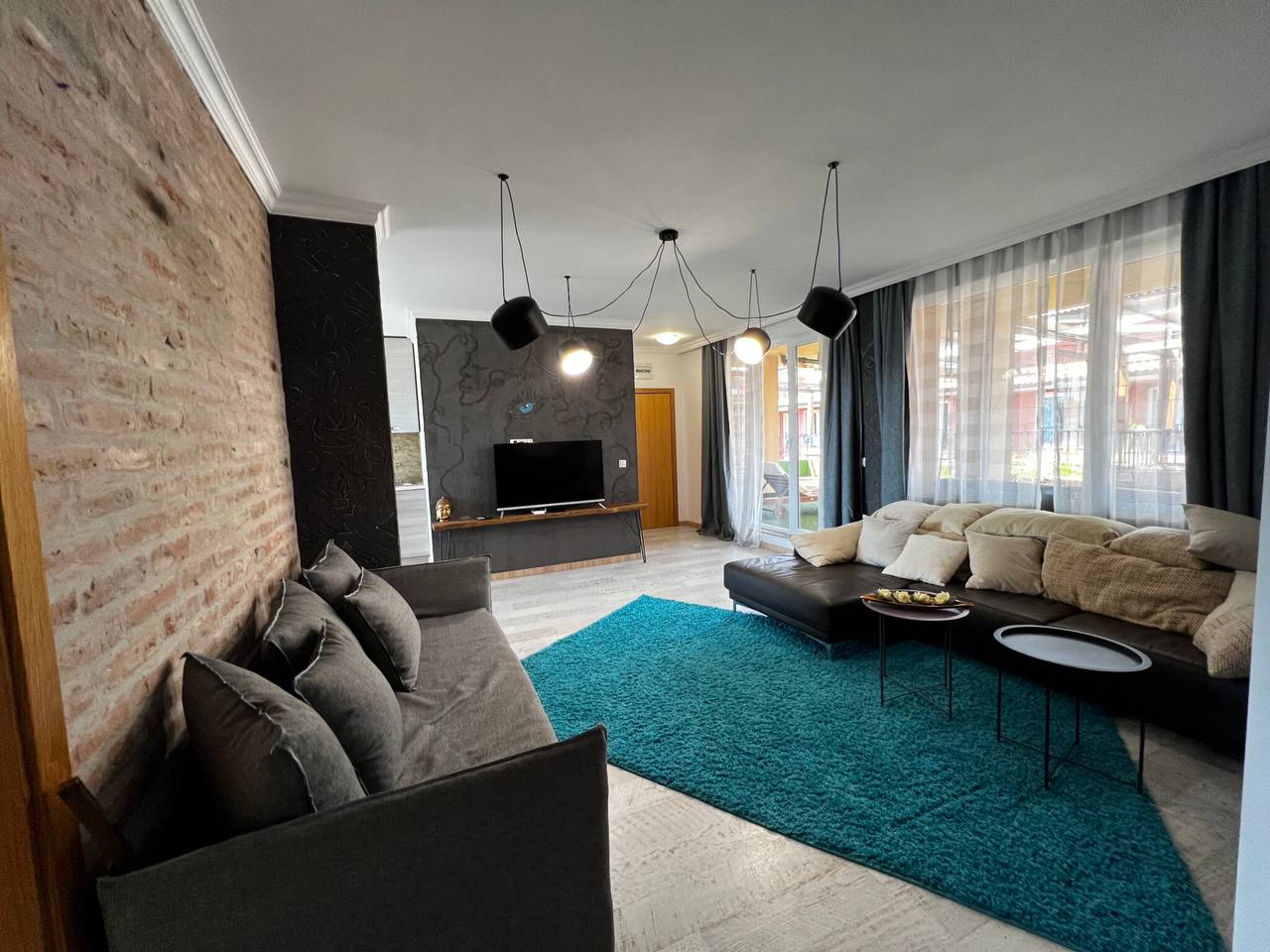 Светлая и просторная квартира, полностью укомплектованная мебелью и техникой. Отлично подходит для круглогодичного проживания благодаря большой площади, современному ремонту и удачной планировке.