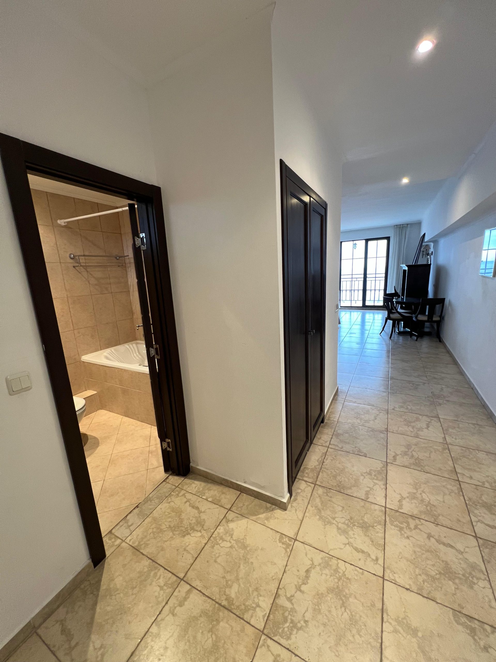 Планировка: гостиная с кухонной зоной, две спальни, две ванные комнаты, балкон
