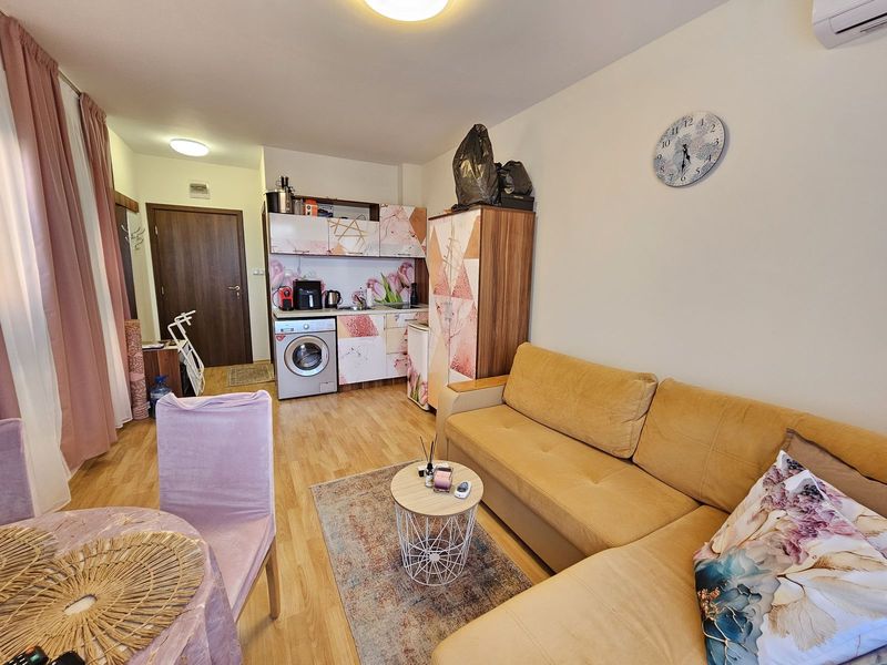 Продаётся студия в комплексе Sunny Day 6 на курорте Солнечный берег. Апартамент расположен на партере, общая площадь составляет 28 м². Квартира продаётся с мебелью. Цена объекта — 37 000 €.