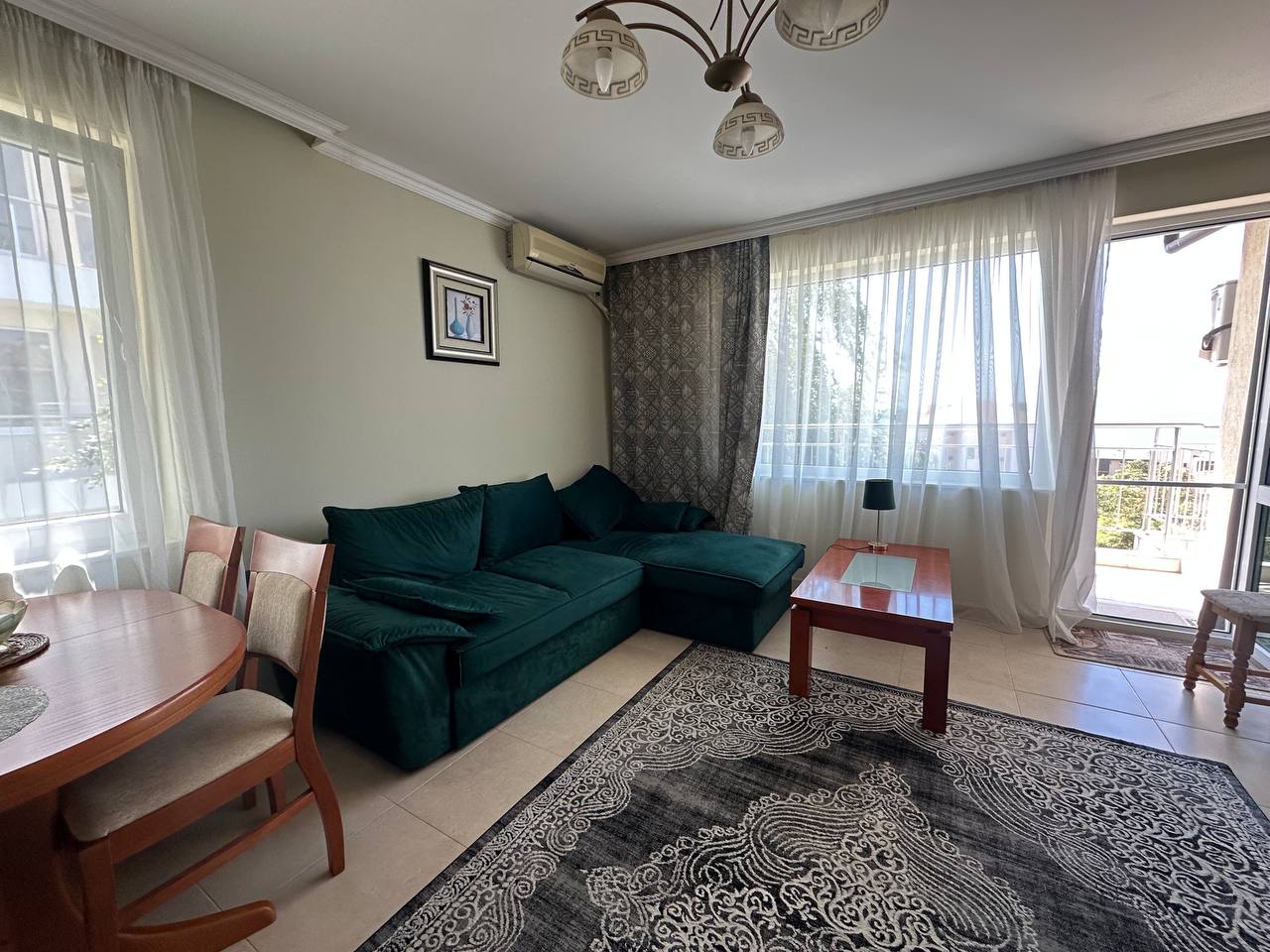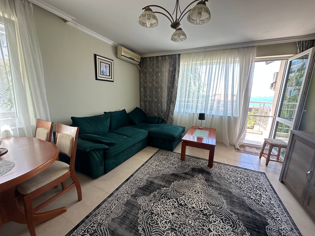 • Планировка: гостиная с кухонной зоной, отдельная спальня, санузел, балкон с видом на море