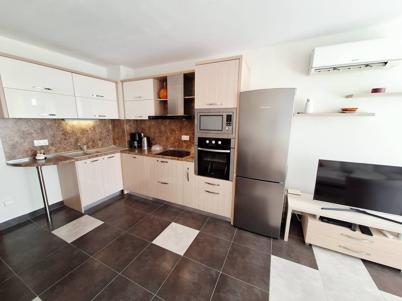 Квартира площадью 108 м² расположена на 4 этаже жилого комплекса Villa Aristo в Святом Власе. Апартамент полностью меблирован и готов к проживанию.
