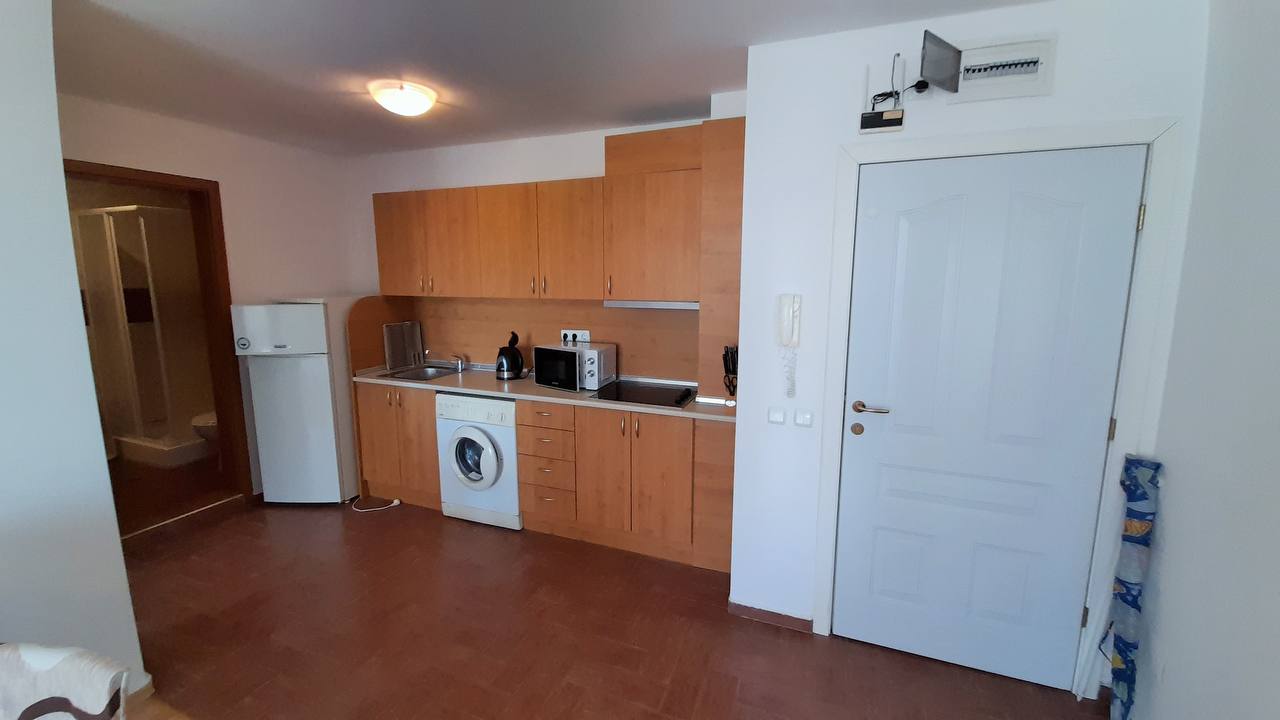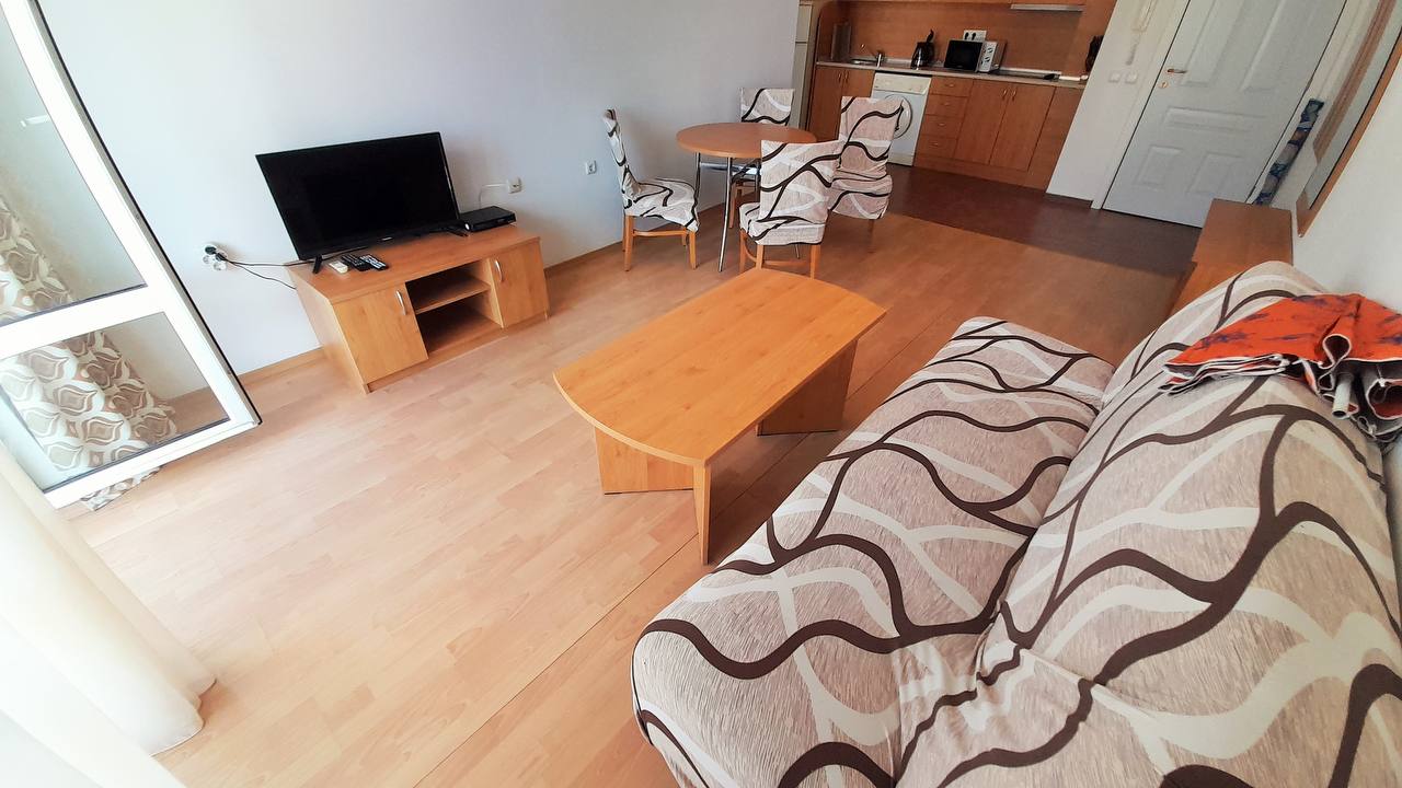 Продается просторная двухкомнатная квартира в жилом комплексе Fort Noks Panorama, расположенном в престижном курортном городе Святой Влас. Квартира на 4 этаже площадью 73 м² включает светлую гостиную с кухонной зоной, отдельную спальню, ванную комнату и балкон с живописным видом на море и бассейн.