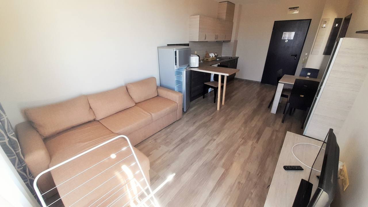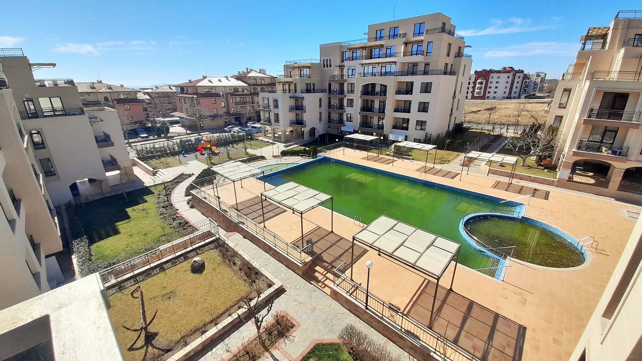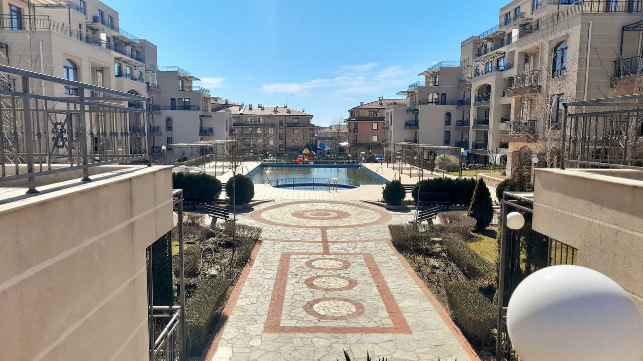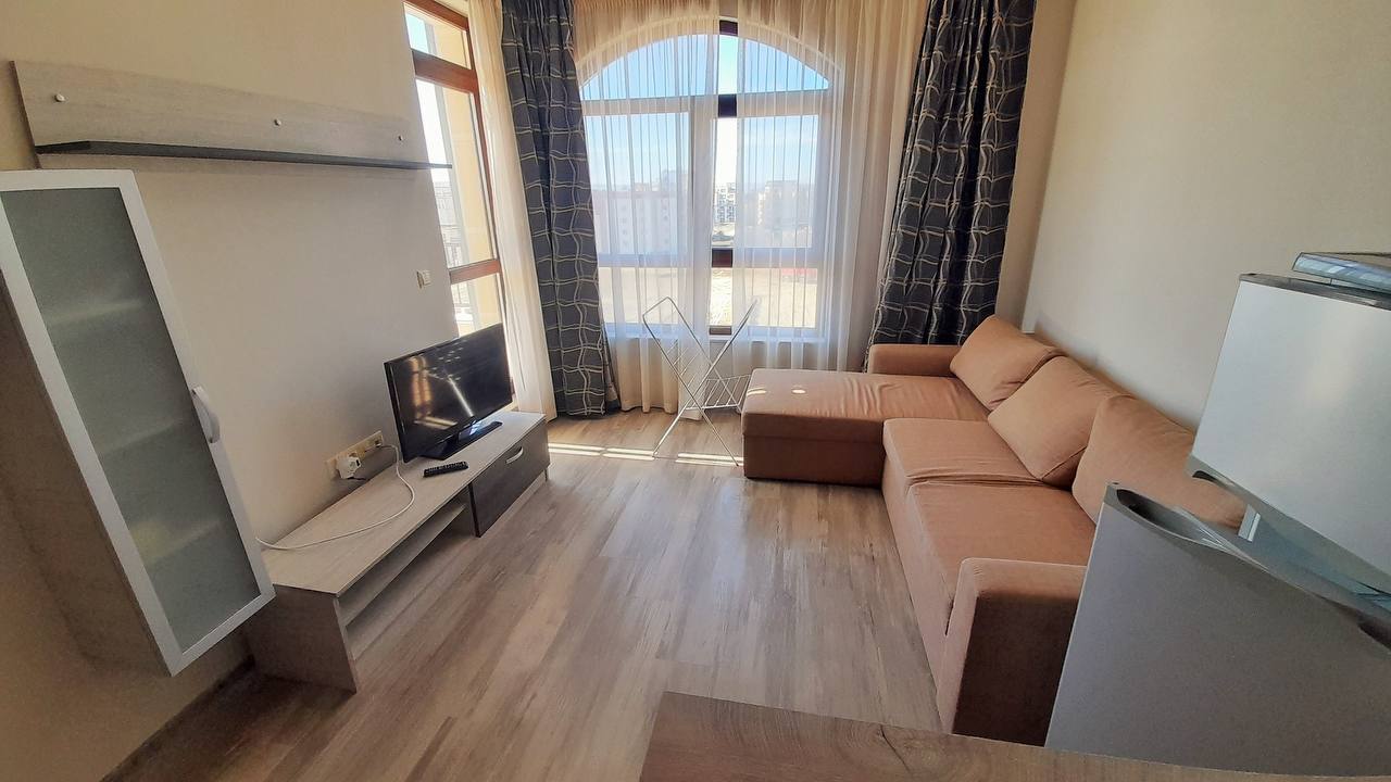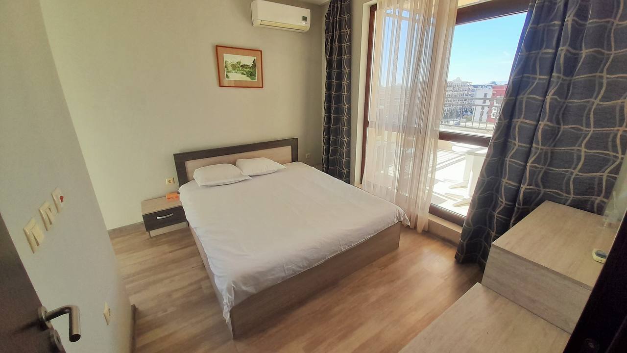 Продается просторный двухкомнатный апартамент в современном комплексе Sorrento Sole Mare, расположенном в престижном районе Святого Власа. Жилье выделяется удобной планировкой, наличием двух больших террас и захватывающим панорамным видом на море.