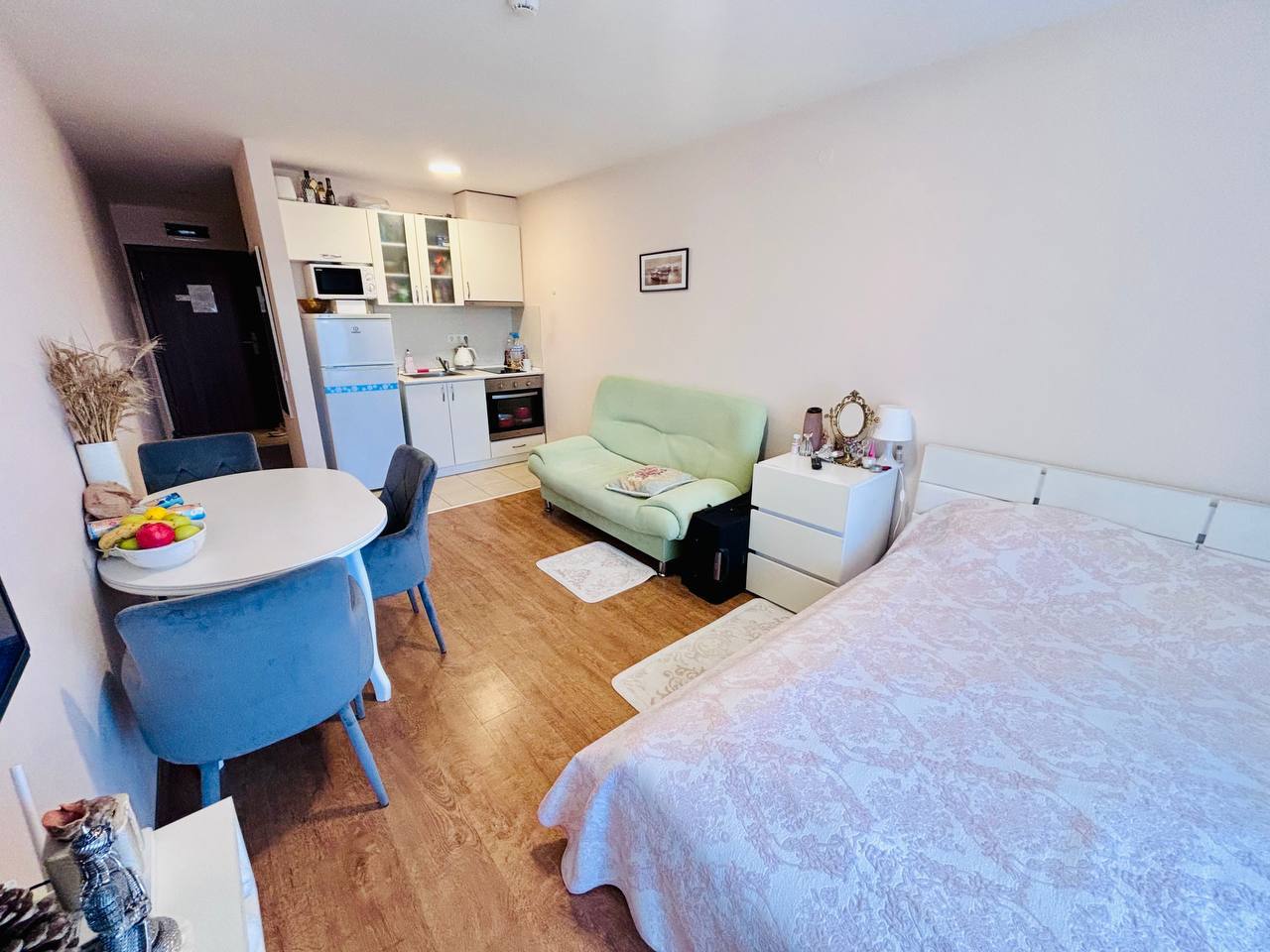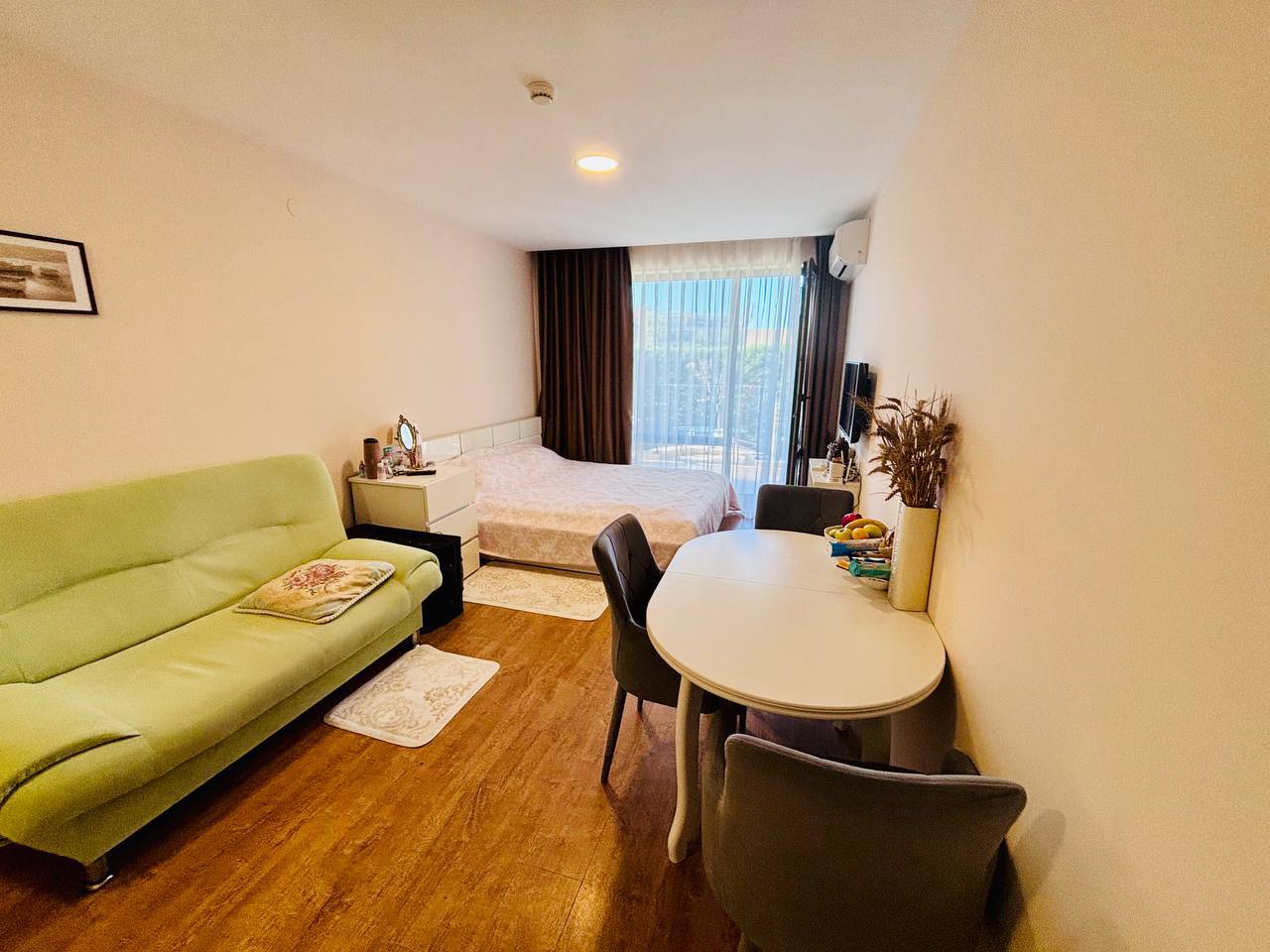 Стоимость студии — 95 500 евро. Святой Влас известен чистым воздухом и близостью к Солнечному берегу. В пешей доступности магазины, рестораны и остановки общественного транспорта.