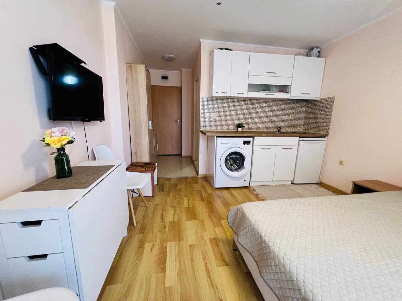 Студия в Афродита 1 — это доступное и практичное решение для тех, кто ищет компактное жильё у моря. Невысокая такса обслуживания с включёнными интернетом и ТВ, хорошее состояние апартамента и удобное расположение делают этот объект привлекательным как для личного использования, так и для аренды.