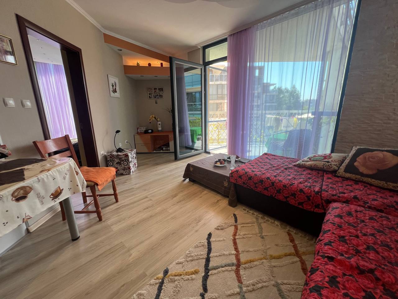 Продаётся уютная двухкомнатная квартира в жилом комплексе «Синяя Перла» в квартале Чайка, Солнечный Берег. Квартира находится на 4 этаже и имеет общую площадь 71 м². Идеально подходит как для проживания, так и для аренды в туристический сезон.