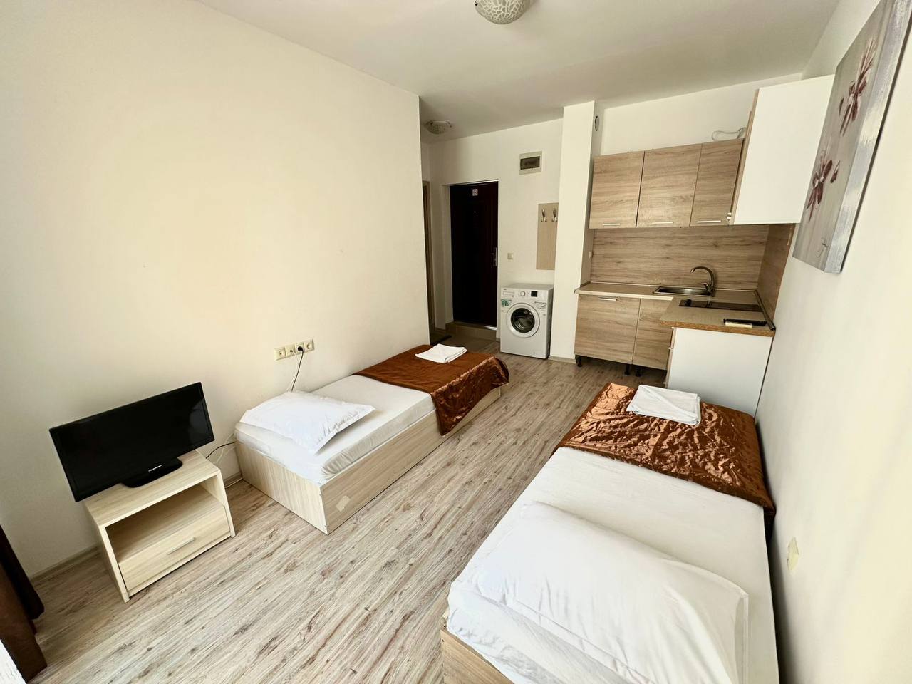 Квартиры с одной спальней пользуются высоким спросом для аренды, особенно в летний сезон. Низкая такса обслуживания повышает рентабельность инвестиций.