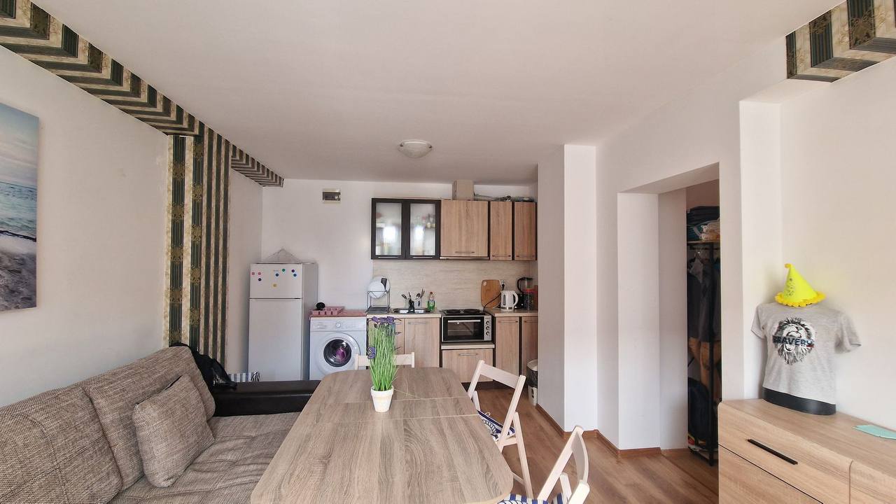 Цена квартиры составляет 50 000 €. Это выгодное предложение для апартамента с одной спальней площадью 44 м² в комплексе с бассейнами и ухоженной территорией. Объект может использоваться как для личного проживания, так и для сдачи в аренду в летний сезон.