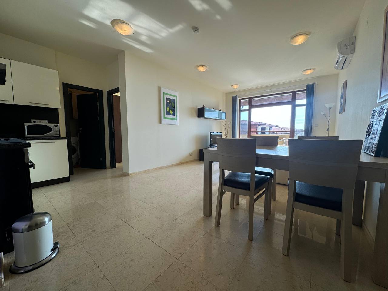 Большие окна наполняют квартиру светом, создавая уютную атмосферу. Балкон — идеальное место для отдыха.