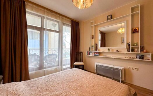 Большие окна обеспечивают хорошее естественное освещение, создавая уютную атмосферу. Квартира готова к использованию и подходит для отдыха, аренды или постоянного проживания.