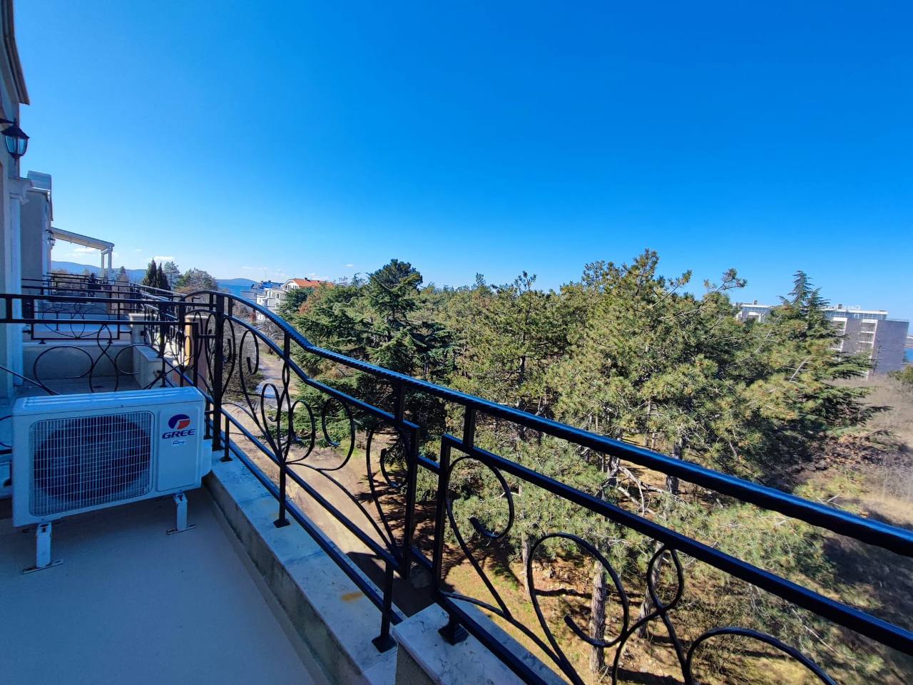 Квартира включает гостиную с кухонной зоной, отдельную спальню, ванную комнату и балкон. Планировка удобна как для постоянного проживания, так и для отдыха у моря.