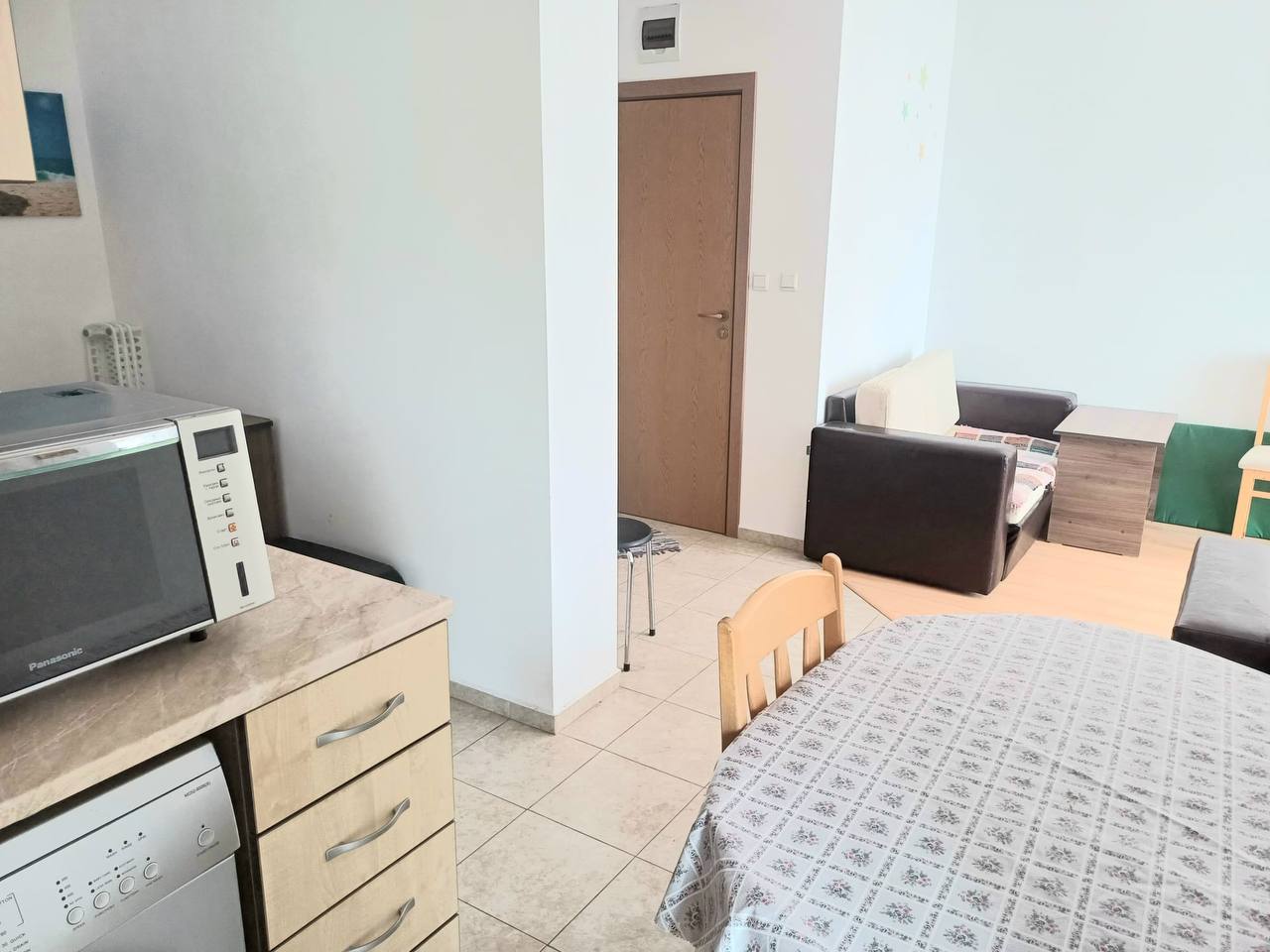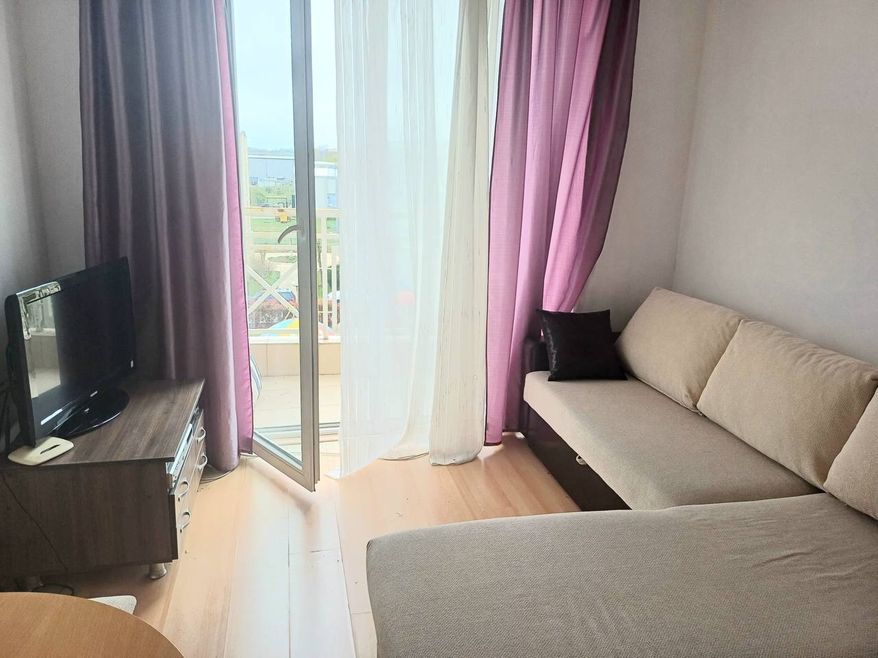 Комплекс находится в спокойной части Солнечного Берега, всего в 10–12 минутах пешком от пляжа. Рядом есть магазины, кафе и автобусная остановка, что обеспечивает удобный доступ к инфраструктуре курорта.