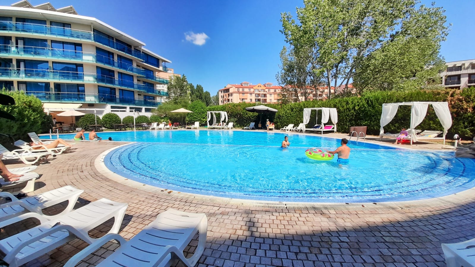 Продаётся двухкомнатная квартира в комплексе Blue Pearl, расположенном в районе Чайка курорта Солнечный Берег. Это спокойный и обжитой район, идеально подходящий для круглогодичного проживания. Документы готовы, продажа должна состояться до конца месяца.