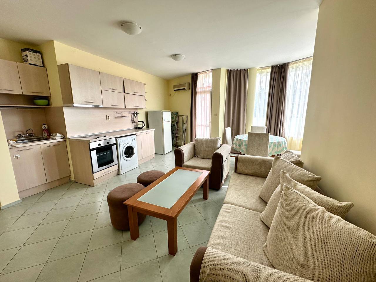 Просторный апартамент площадью 97 м² на 3 этаже идеально подходит для отдыха и постоянного проживания у моря. Квартира полностью готова к использованию и отличается функциональной планировкой. Стоимость составляет 110 000 евро, а годовая такса обслуживания — всего 10 евро за квадратный метр.