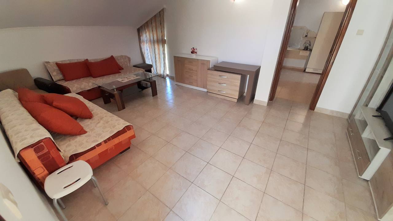 Комплекс находится всего в 100 метрах от пляжа, что позволяет наслаждаться морем без необходимости в транспорте. Район тихий и зелёный, с низкой плотностью застройки, но в пешей доступности есть магазины, аптеки, кафе и автобусные остановки. До яхтенного порта Marina Dinevi можно дойти за 10–15 минут — это одно из самых красивых мест для прогулок и отдыха.