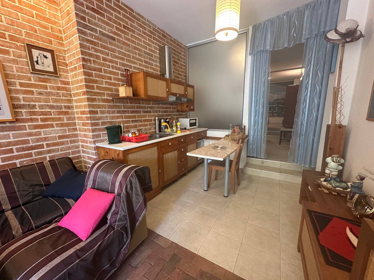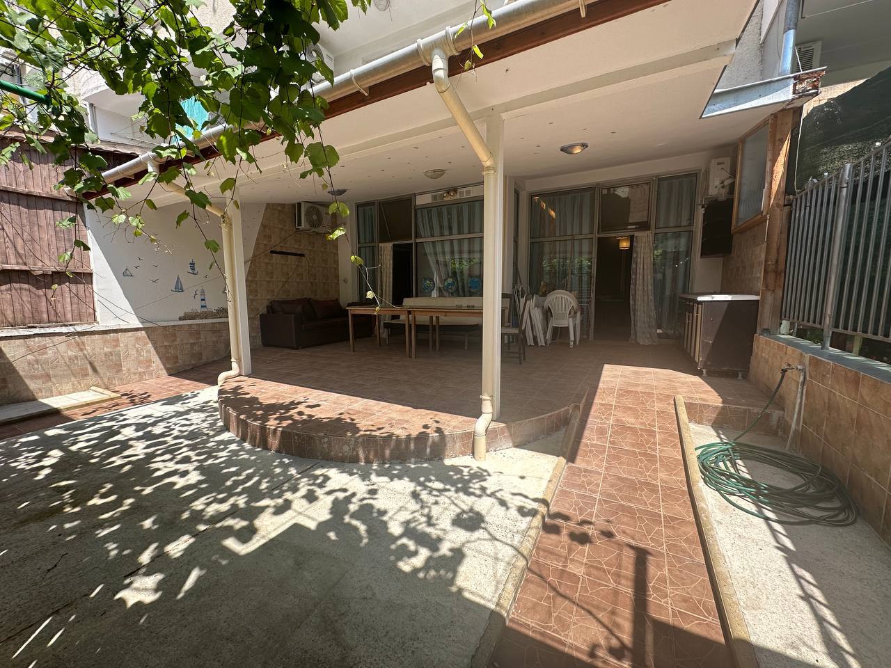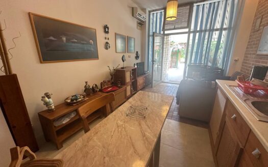 Это идеальный вариант для тех, кто ищет спокойное жильё у моря с ощущением собственного пространства. Студия на первом этаже имеет собственный дворик, где можно оборудовать зону отдыха или создать небольшой сад.