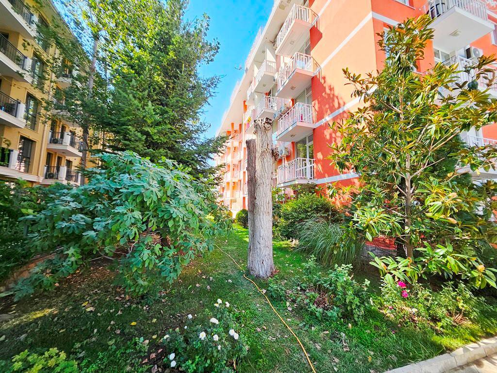 Комплекс расположен в тихом, благоустроенном районе Солнечного берега, всего в нескольких минутах ходьбы от магазинов, аптек, кафе и ресторанов. До пляжа — примерно 600–700 метров, прогулка займёт 10 минут. Рядом находится автобусная остановка, что делает передвижение по курорту и до соседних городов (Несебр, Святой Влас, Бургас) удобным.