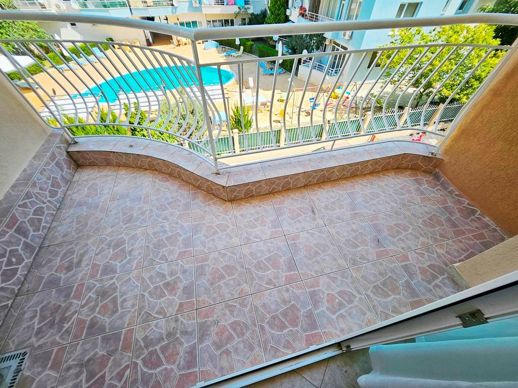 Продаётся трёхкомнатная квартира с двумя спальнями в современном жилом комплексе Silver Springs, расположенном в спокойной части курорта Солнечный берег. Апартамент находится на 2 этаже, имеет общую площадь 103 м² и предлагается по цене 99 900 евро. Из окон и балкона открывается вид на бассейн и зелёную территорию комплекса.