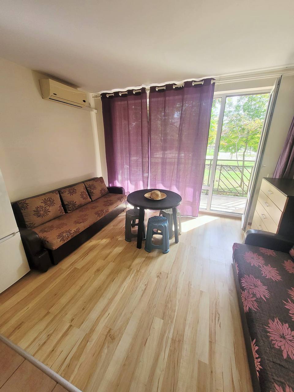 Студия представляет собой светлое пространство с удобной планировкой, где можно организовать зону отдыха, кухню и место для сна. Партерное расположение обеспечивает лёгкий доступ, что особенно удобно для семей с детьми или пожилых людей. Полностью готова к использованию, подходит для отдыха у моря или как инвестиция для получения дохода от аренды.