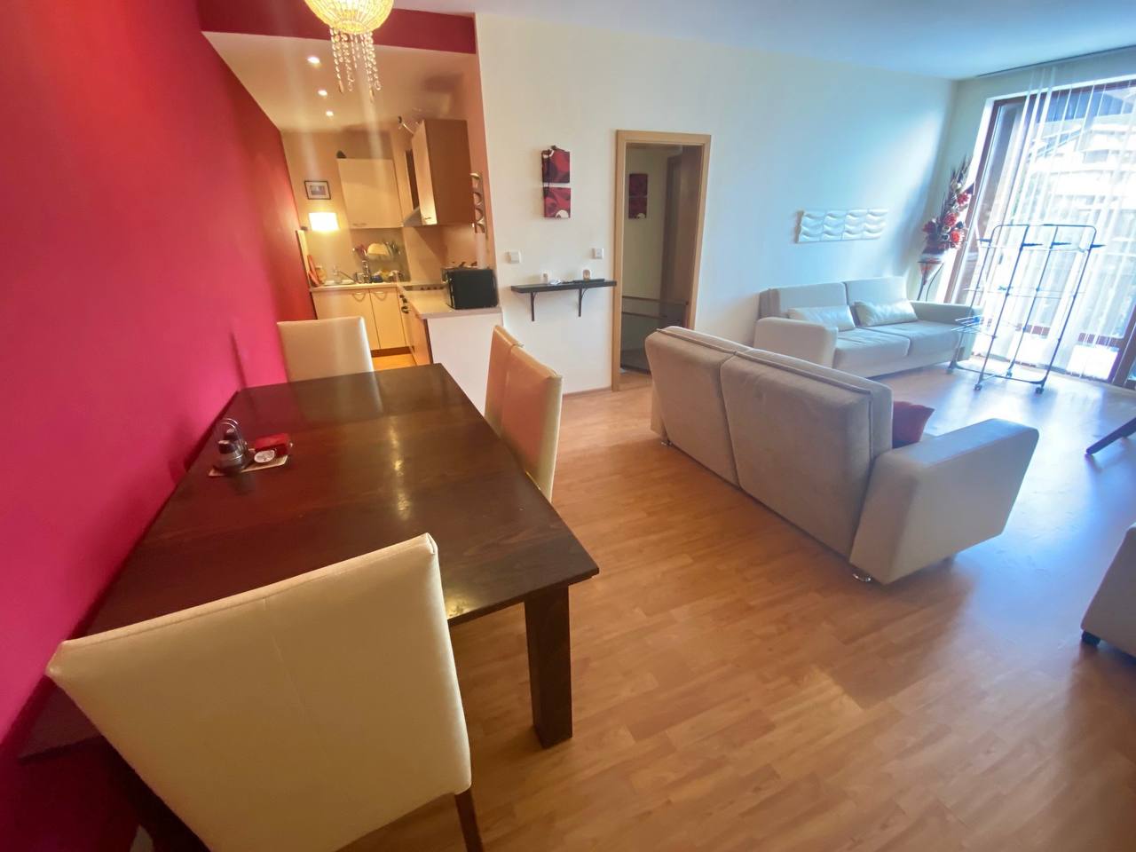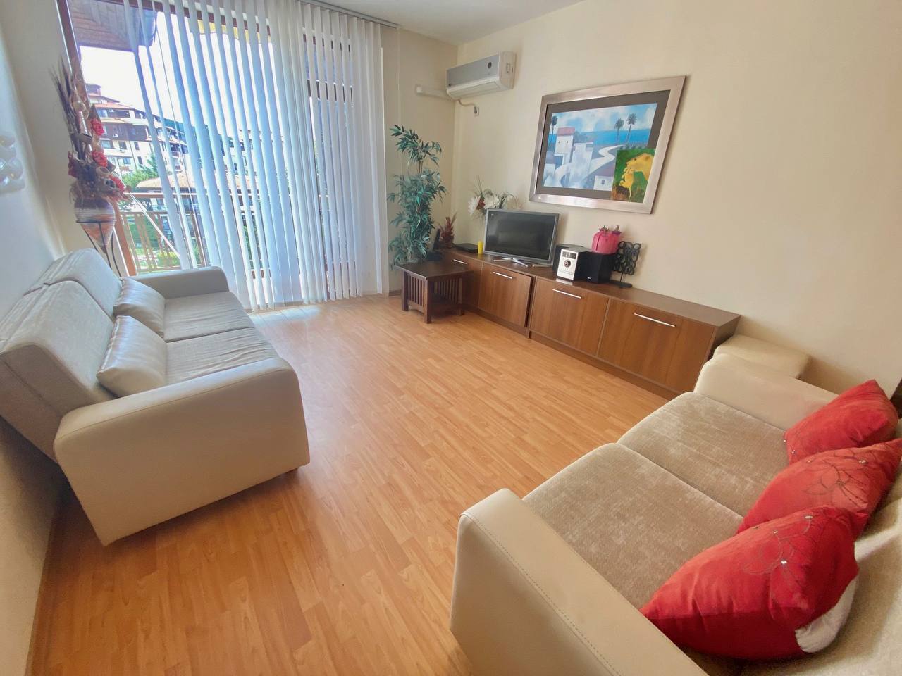 Предлагается к продаже светлая трёхкомнатная квартира с двумя спальнями в престижном комплексе Garden Of Eden, Святой Влас. Апартамент находится на 4 этаже из 6, имеет площадь 91 м² и предлагается по цене 170 000 евро. Годовая такса обслуживания составляет 1 100 евро.