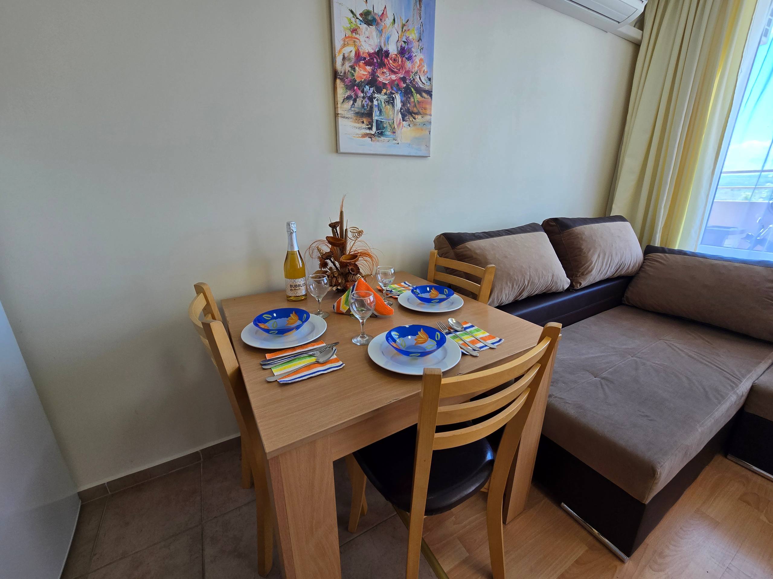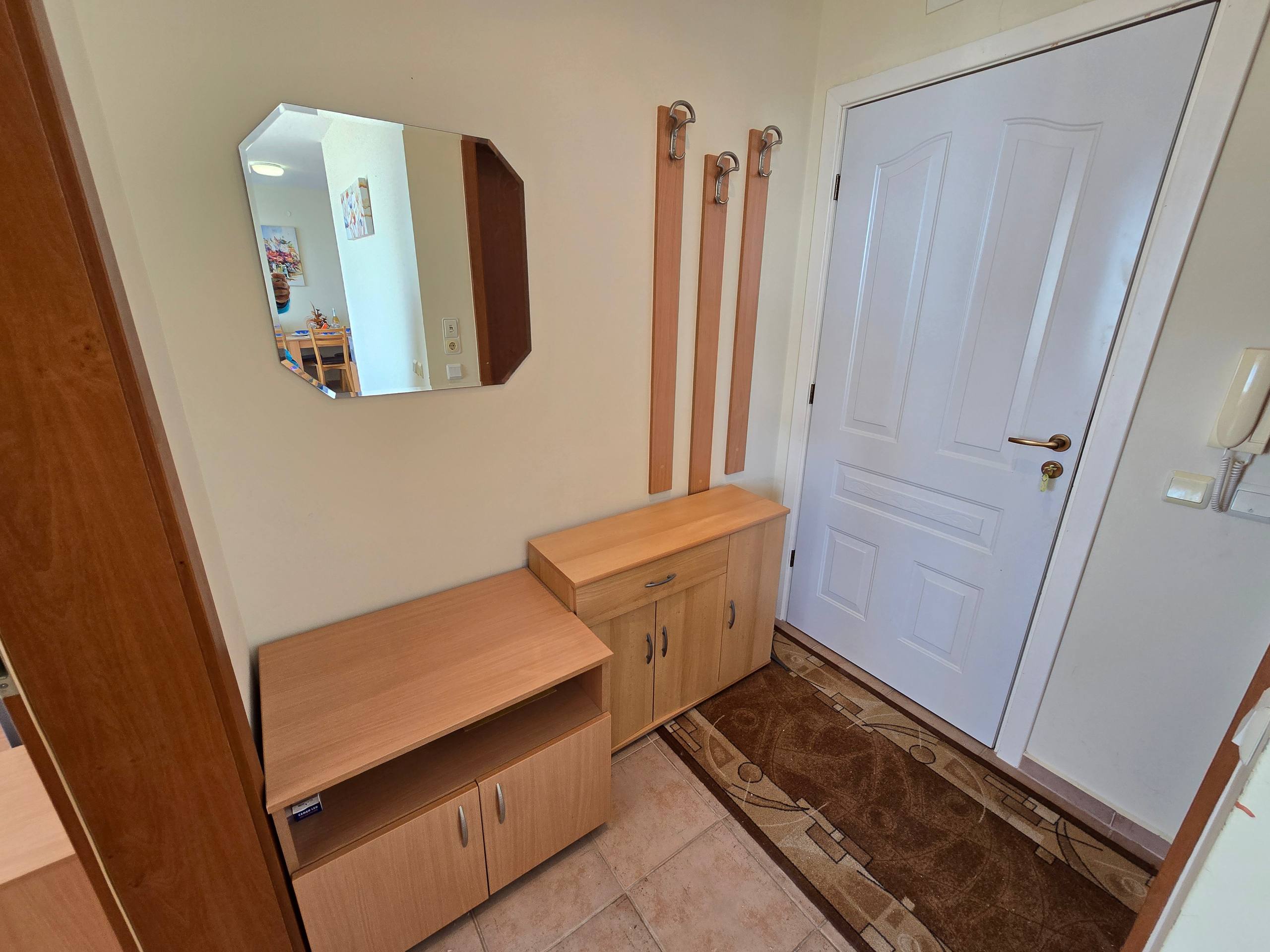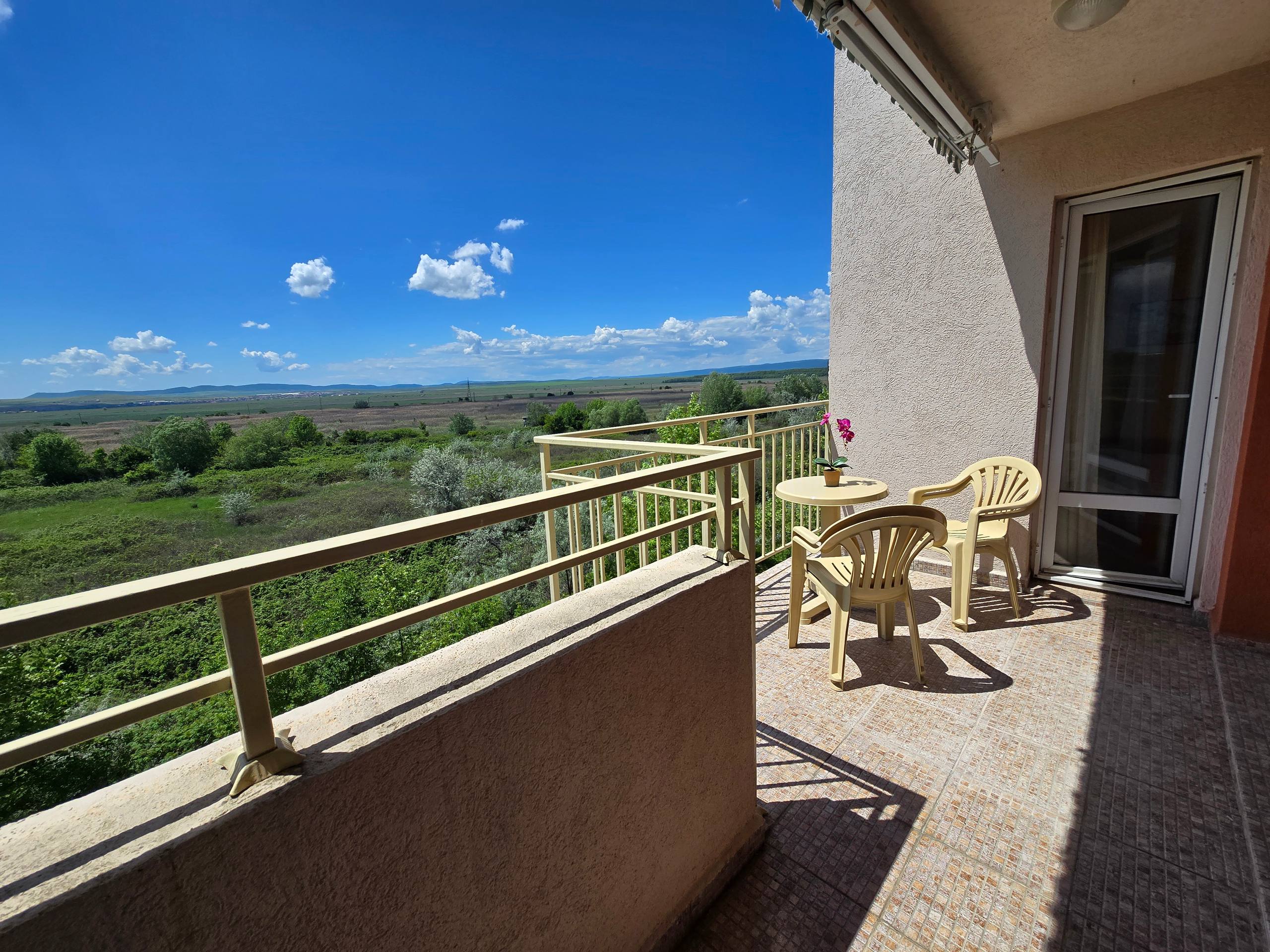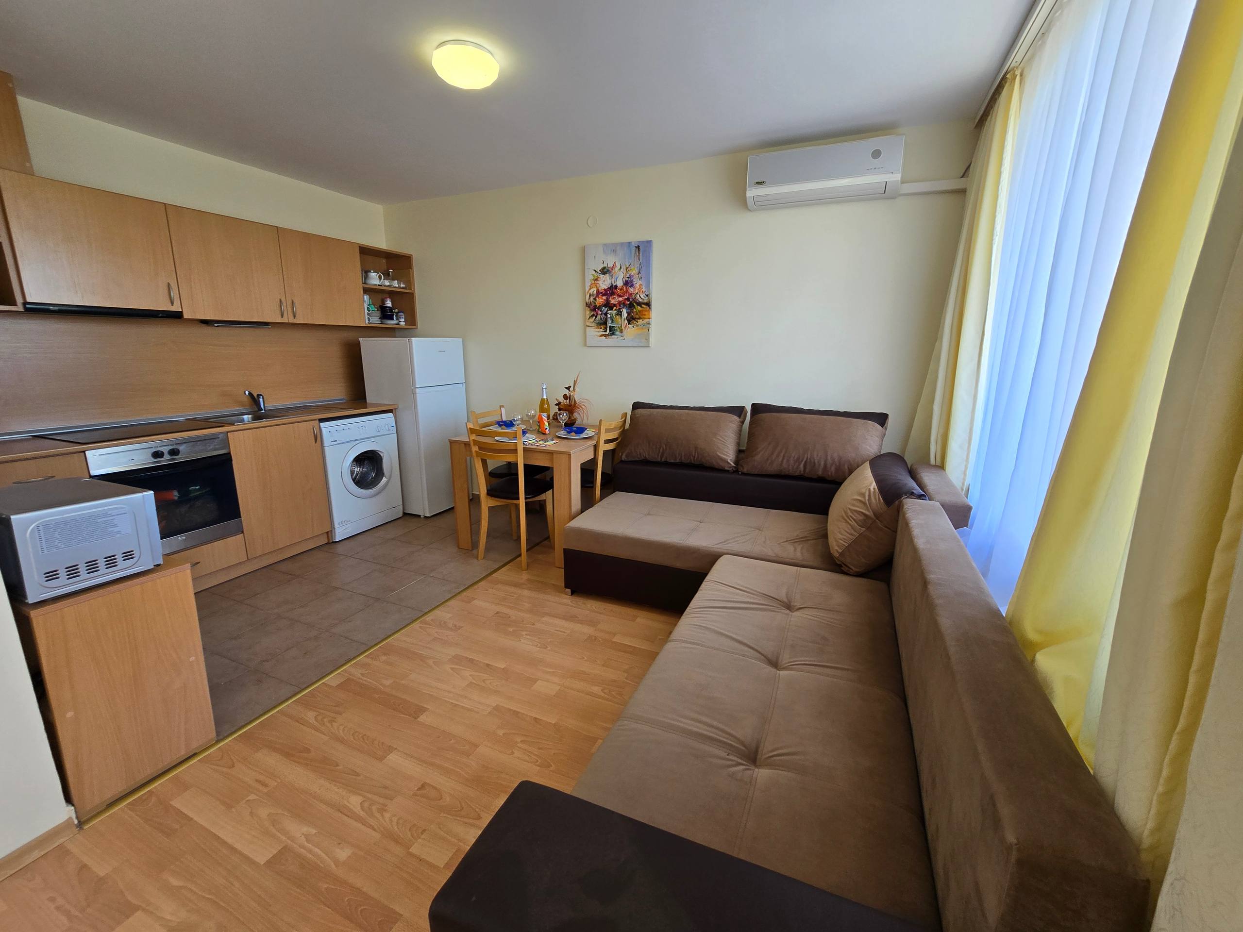 Предлагается двухкомнатная квартира в комплексе Nessebar Fort Club на Солнечном Берегу. Апартамент площадью 60 квадратных метров расположен на последнем, третьем этаже, что обеспечивает максимальную приватность и естественное освещение.