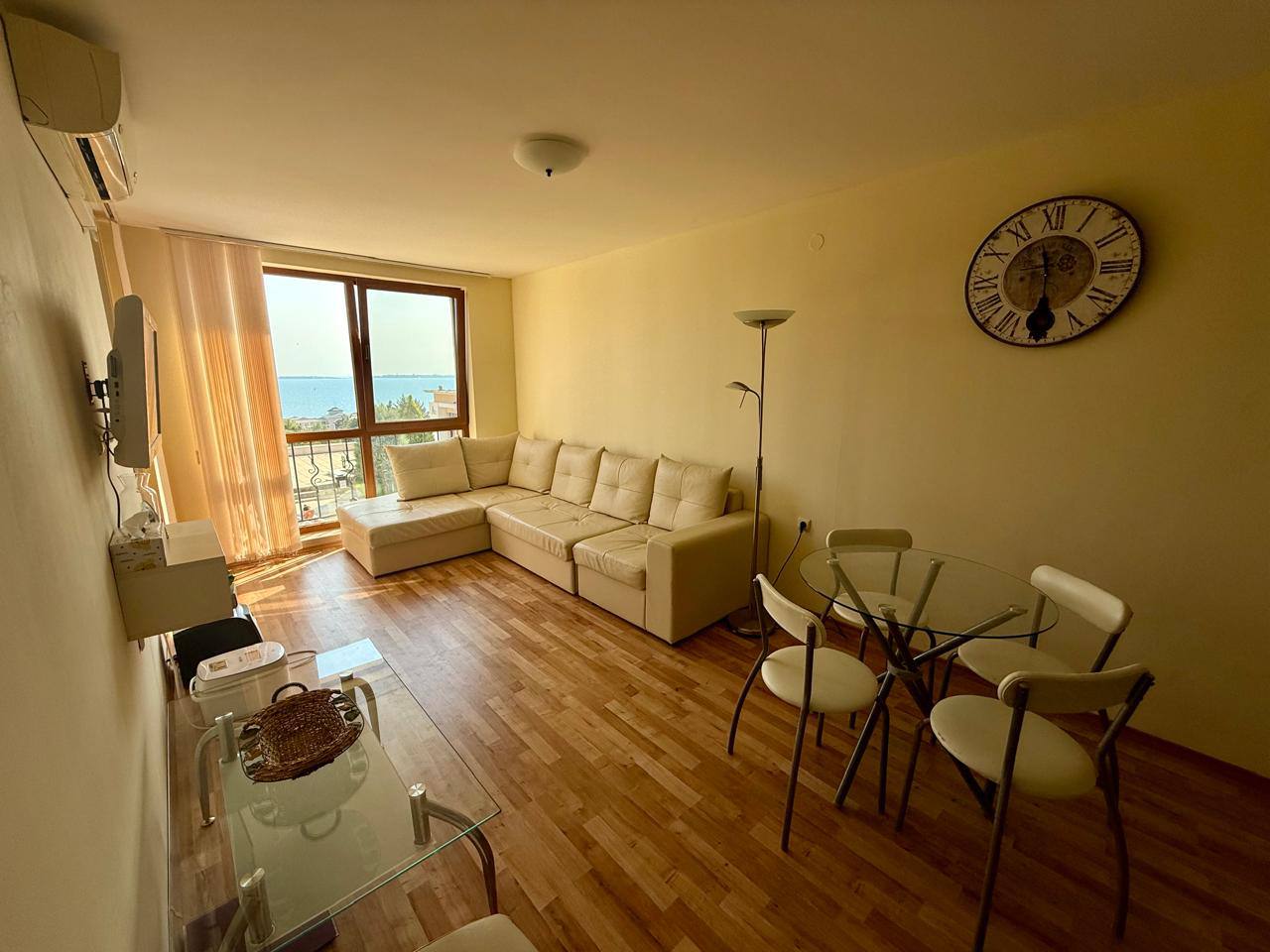 Продаётся просторная трёхкомнатная квартира с двумя спальнями в комплексе Sea Fort, расположенном в курортном городе Святой Влас. Апартамент находится на 1 этаже и имеет общую площадь 76 квадратных метров. Цена составляет 136 000 евро.
