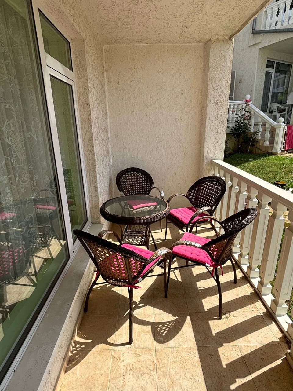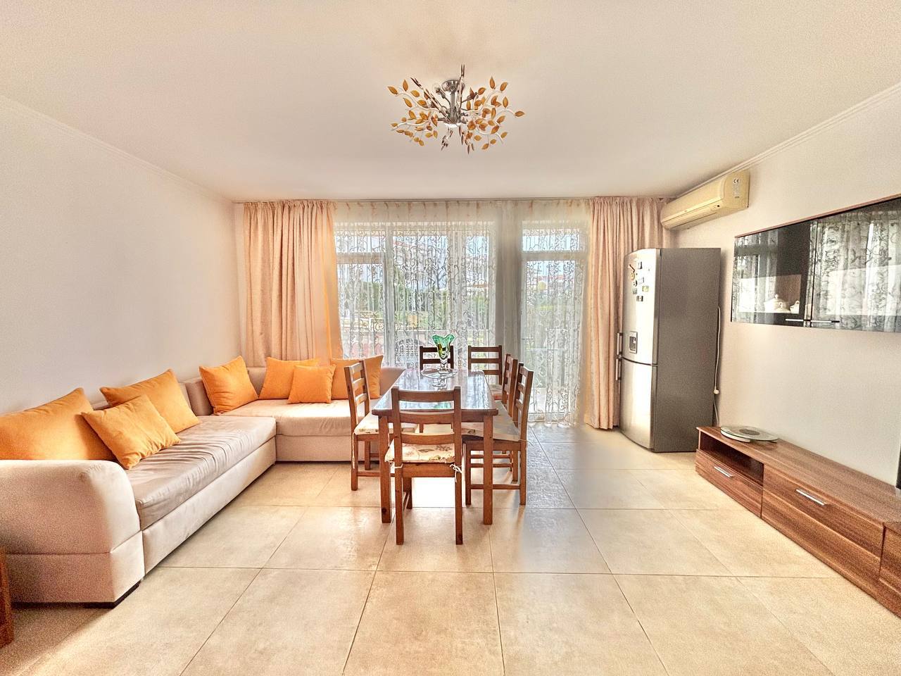 Просторная трехкомнатная квартира с двумя спальнями в жилом комплексе Святой Влас — Лазур 1. Апартамент на 1 этаже, площадь 90 м², цена 115 000 евро. Такса обслуживания составляет 12 евро за квадратный метр в год.