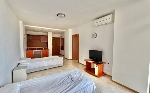 Продается двухкомнатная квартира в жилом комплексе Poseidon на Солнечном Берегу. Апартамент расположен на шестом этаже, площадь составляет 71 квадратный метр, цена — 71 000 евро. Годовая такса обслуживания — 1000 евро.