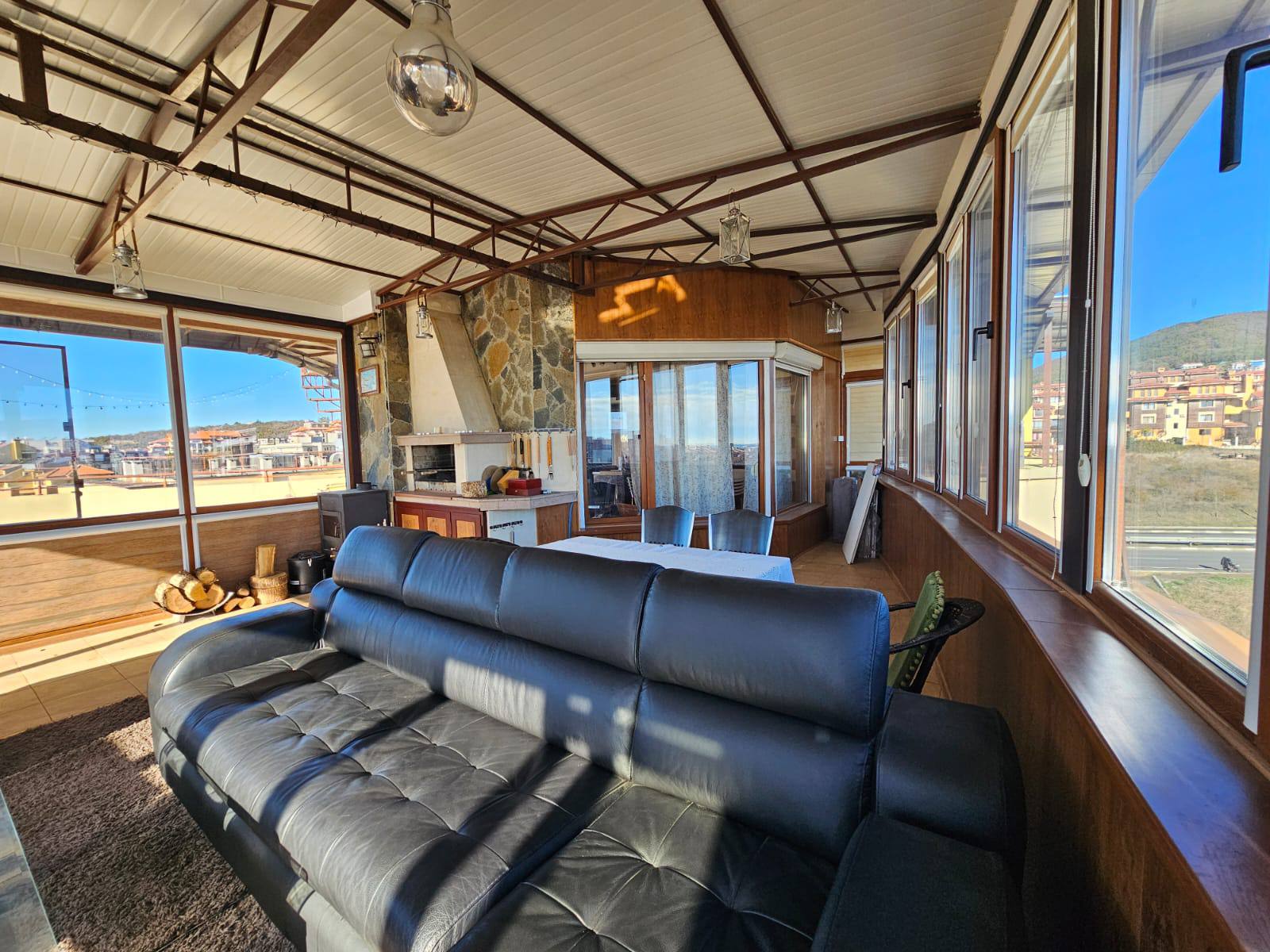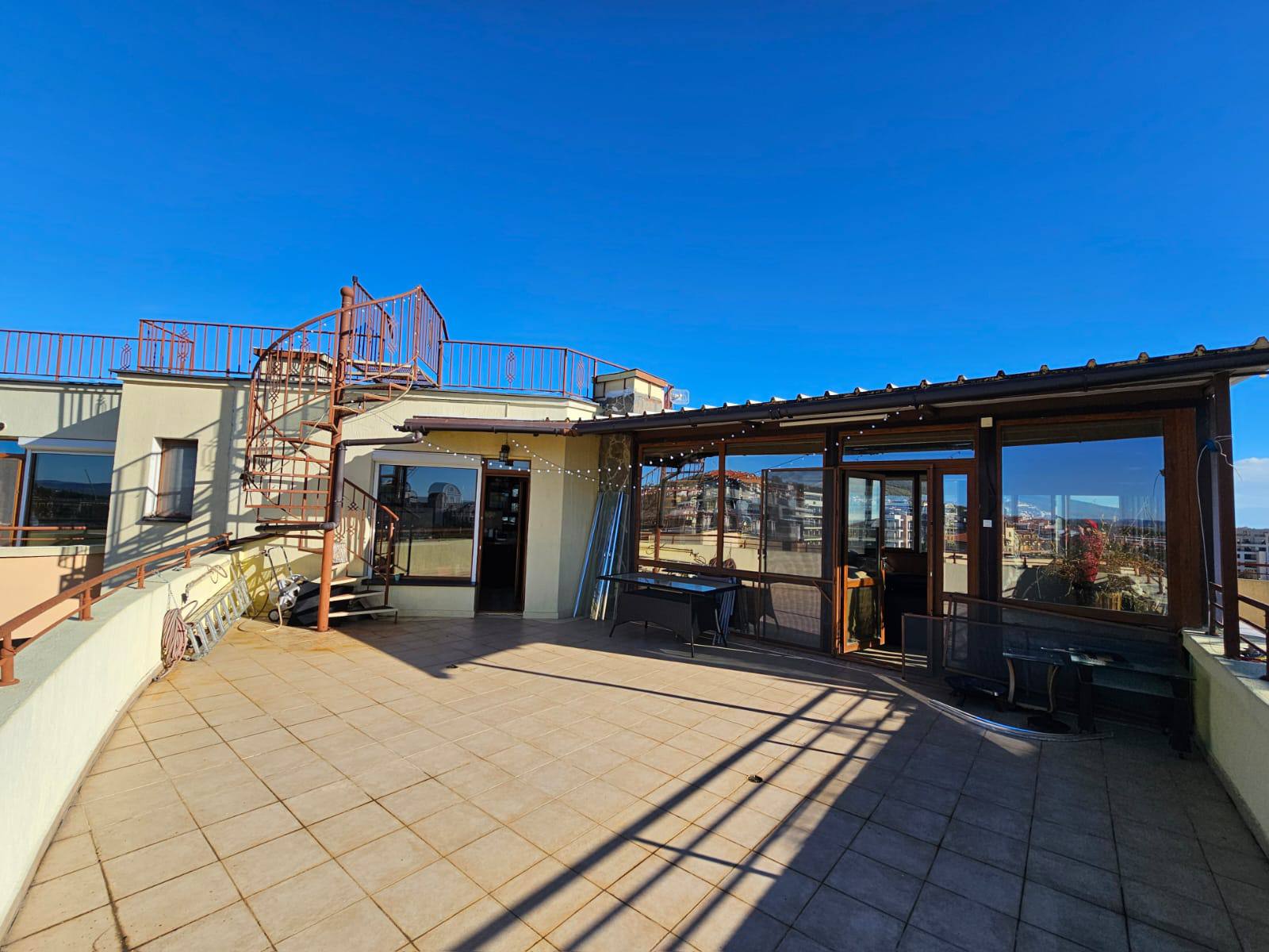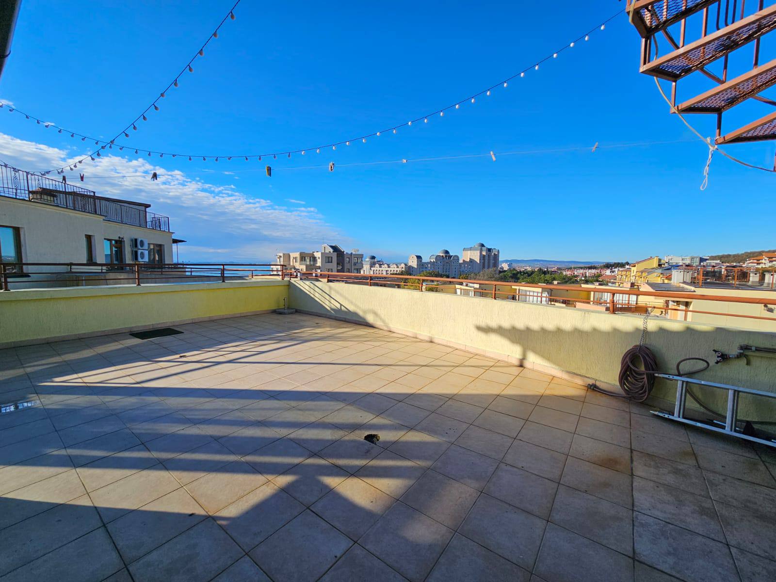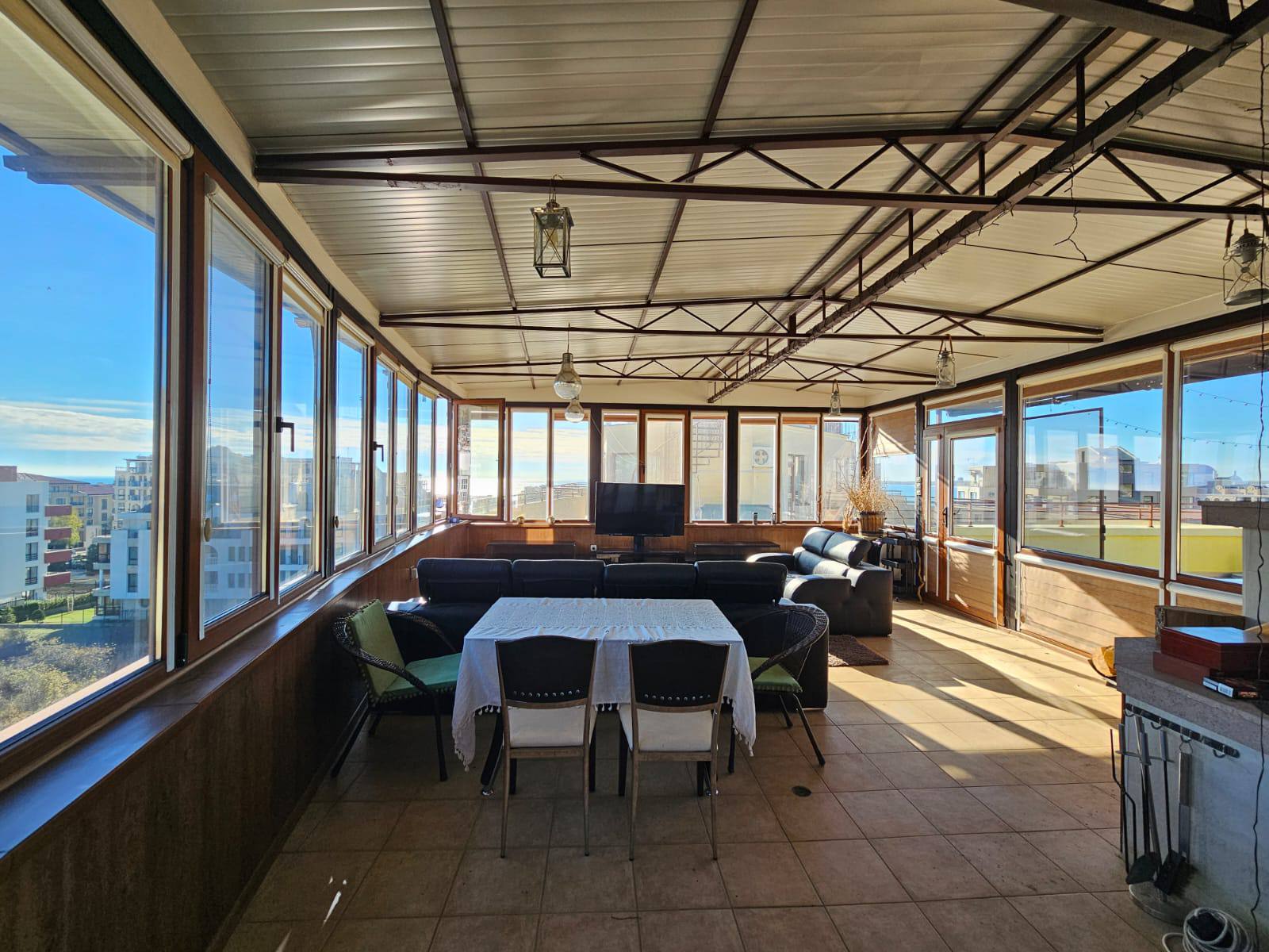 Предлагается просторная трёхкомнатная квартира с двумя спальнями в курортном городе Святой Влас. Апартамент находится на 6 этаже и имеет площадь 148 м², оснащён выходом на крышу с открытым видом на море. Стоимость составляет 118 000 евро, годовая такса обслуживания — 10 евро за м².