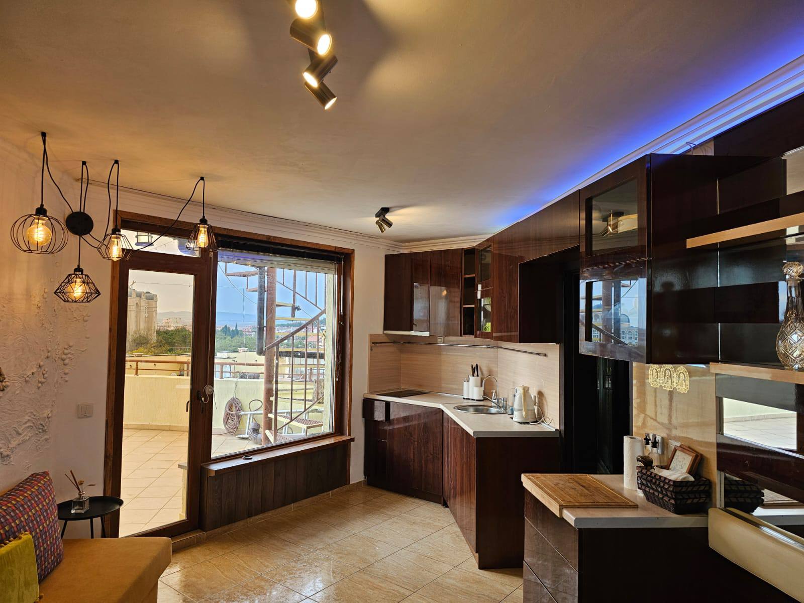 Одним из главных преимуществ является вид на море, который открывается из нескольких помещений. Выход на крышу предоставляет возможность создать приватное пространство для отдыха или озеленения.
