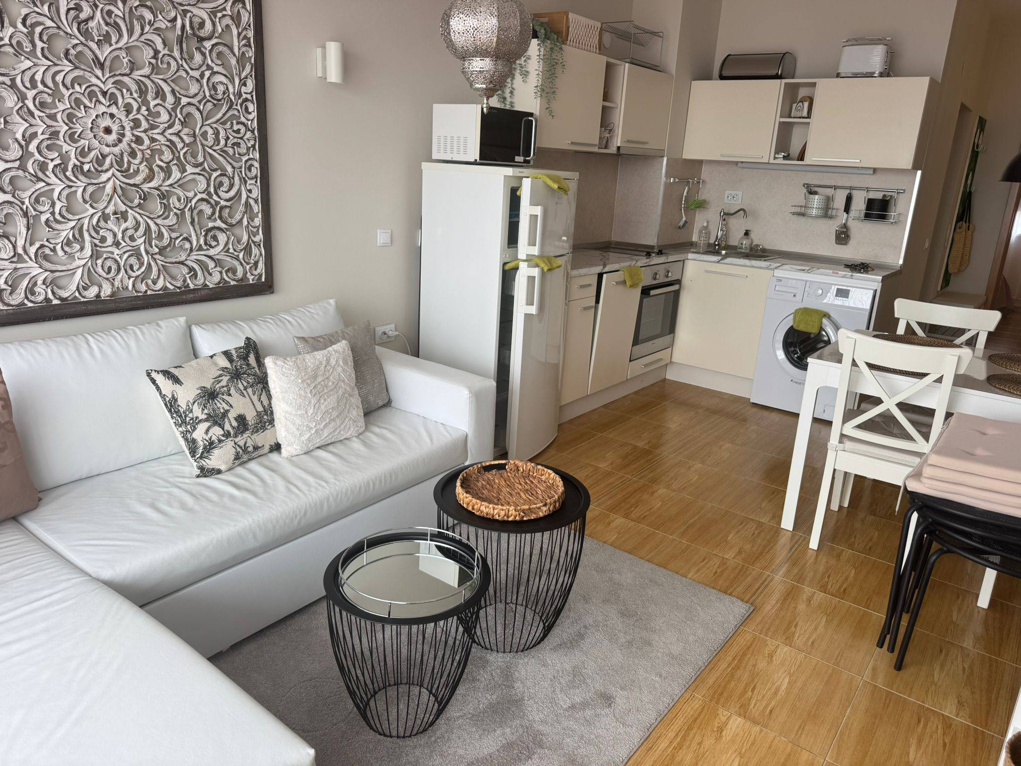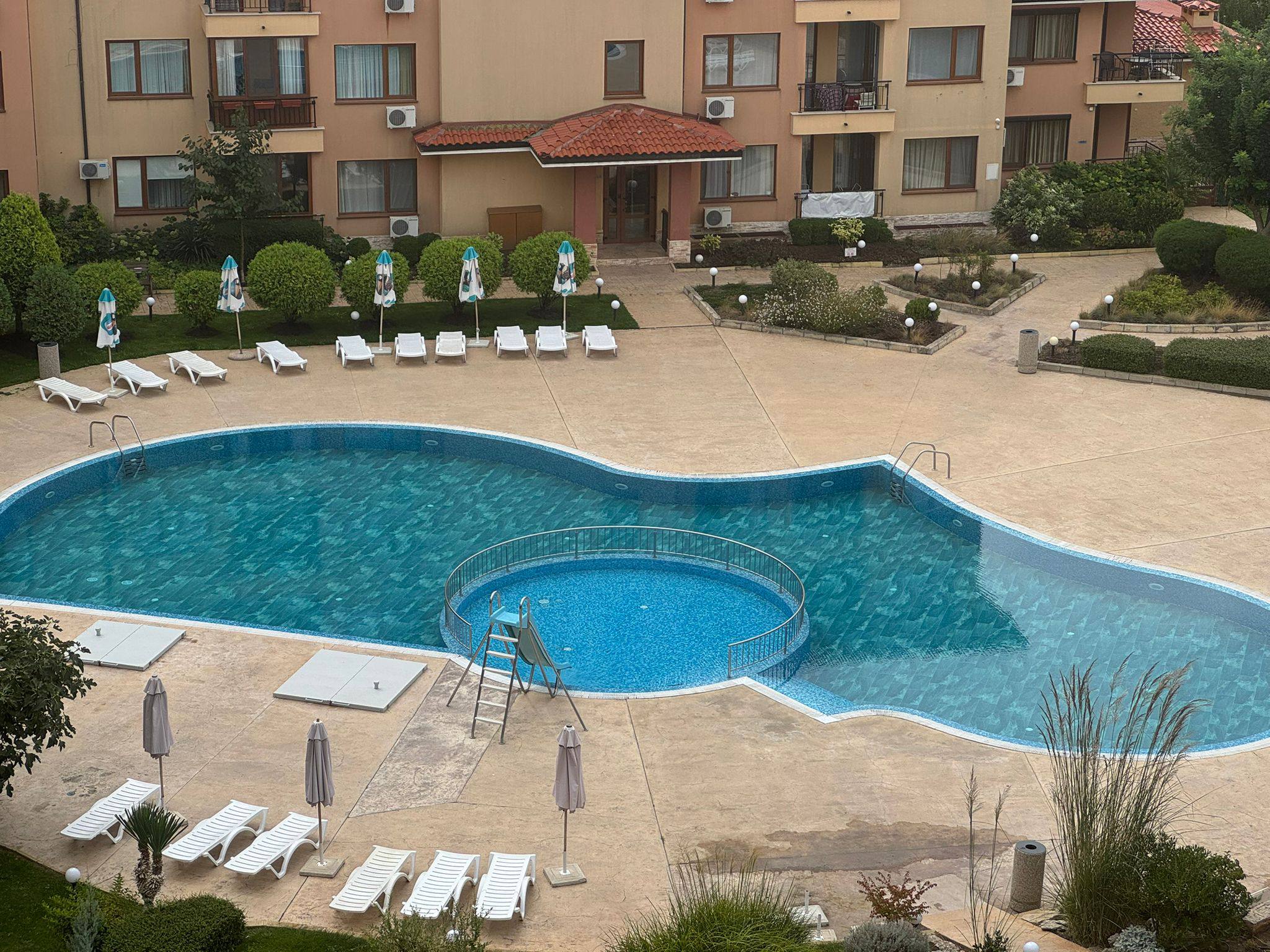 Квартира отличается светлым и уютным интерьером, а вид на бассейн делает её привлекательной как для проживания, так и для аренды.