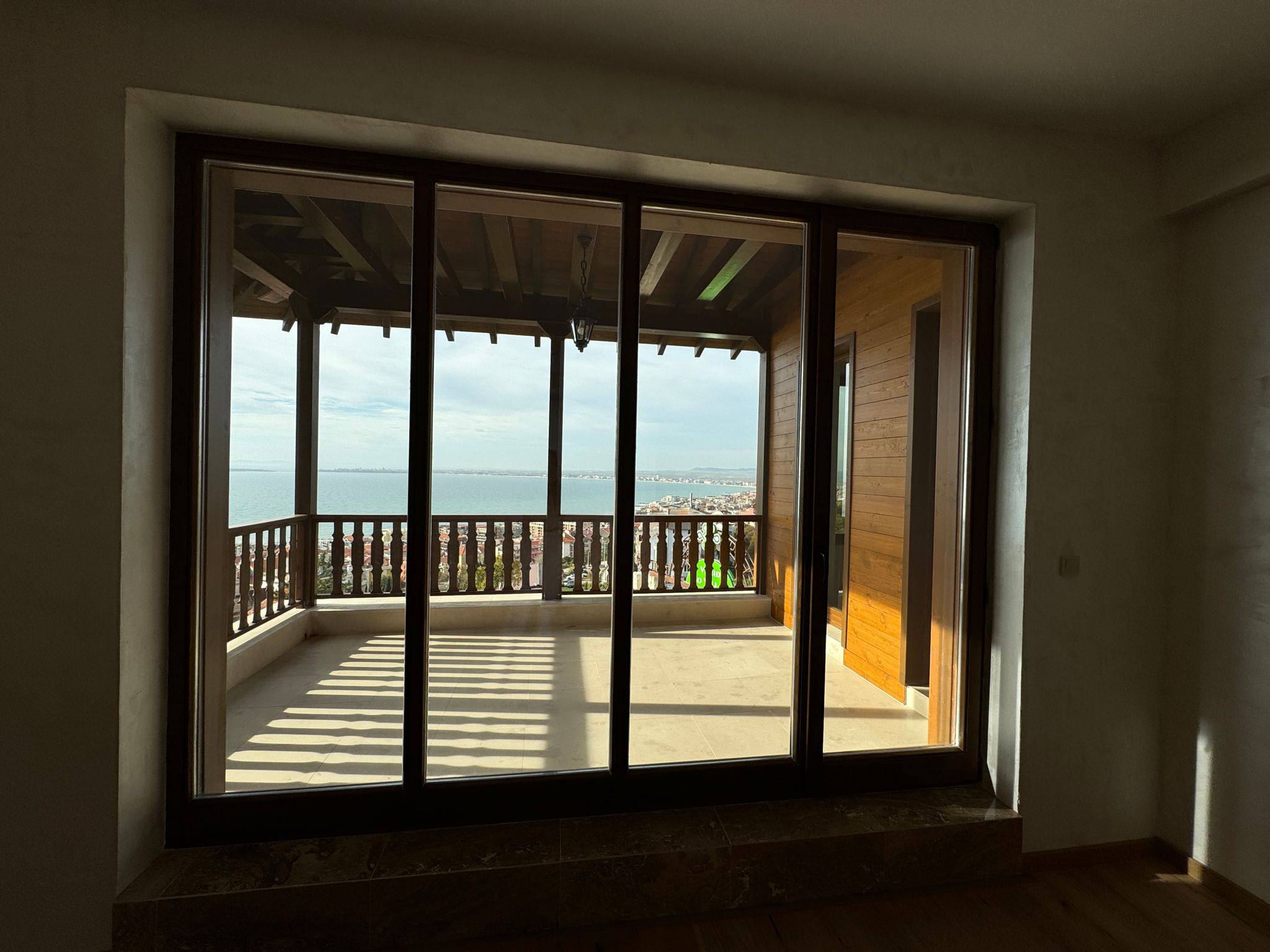 Дом предлагает открытые виды на море с обоих этажей и с территории перед домом. Это полноценная морская панорама, создающая ощущение свободы.