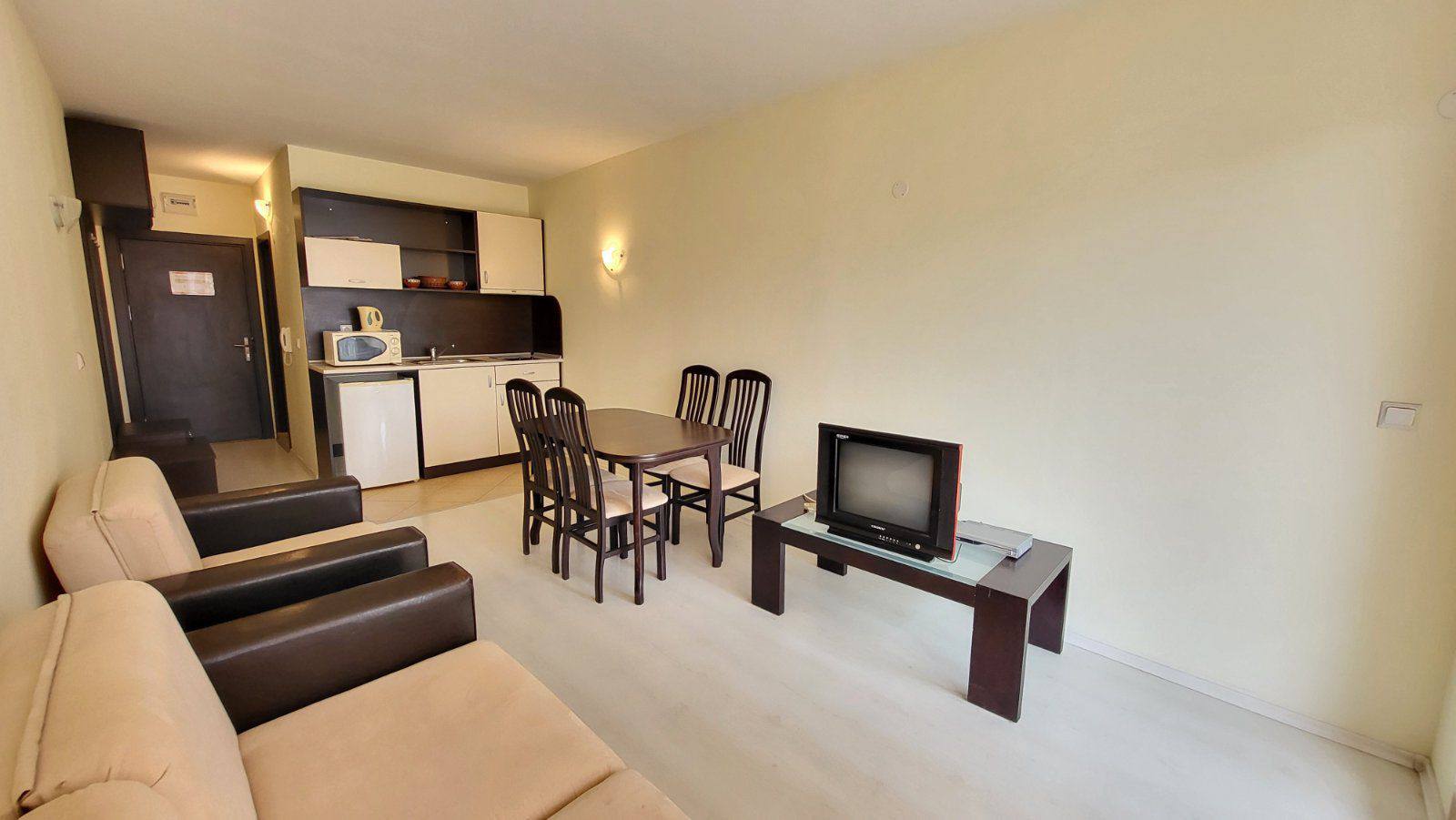 Студия в комплексе Sunset Beach 4 — идеальный вариант для покупки недвижимости на Солнечном Берегу. Апартамент расположен на 5-м этаже и имеет площадь 41,2 м². Цена составляет 50 000 евро, а годовая такса обслуживания — 10 евро/м².