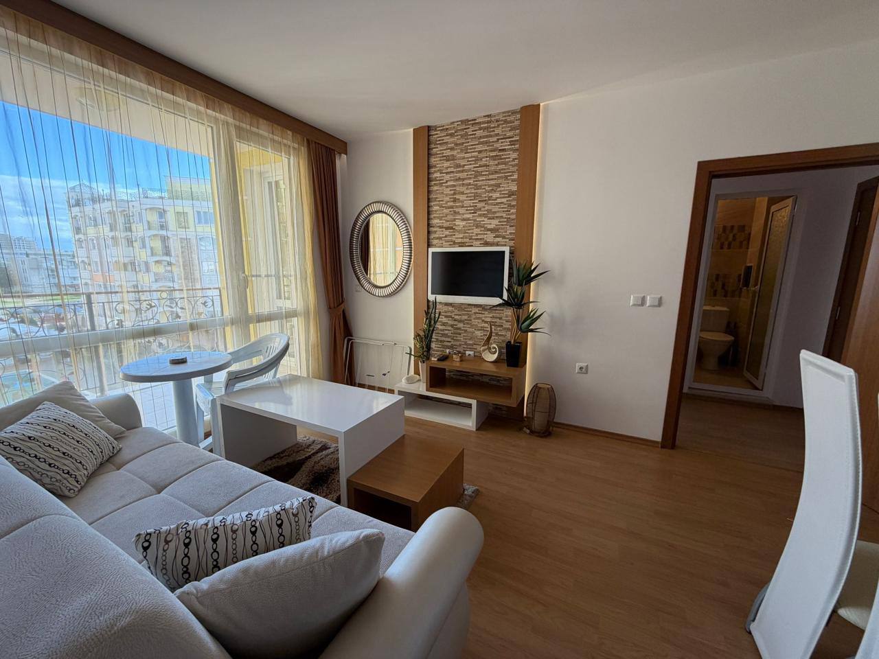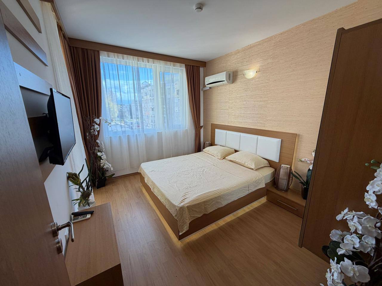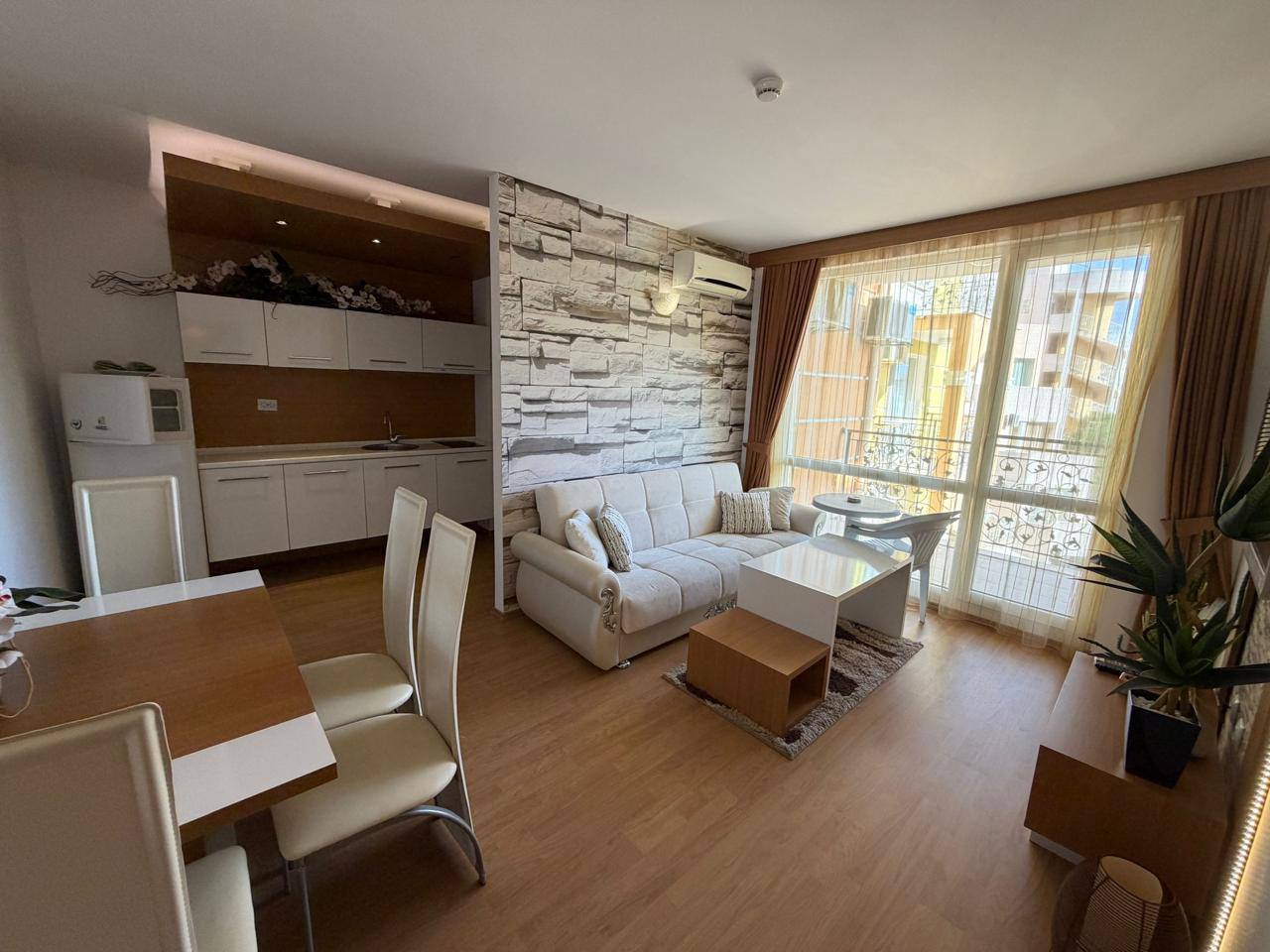 Стильная двухкомнатная квартира площадью 65 м², расположенная на 5 этаже жилого комплекса Sweet Home 1 в Солнечном Береге. Идеальный вариант для проживания и инвестиций.