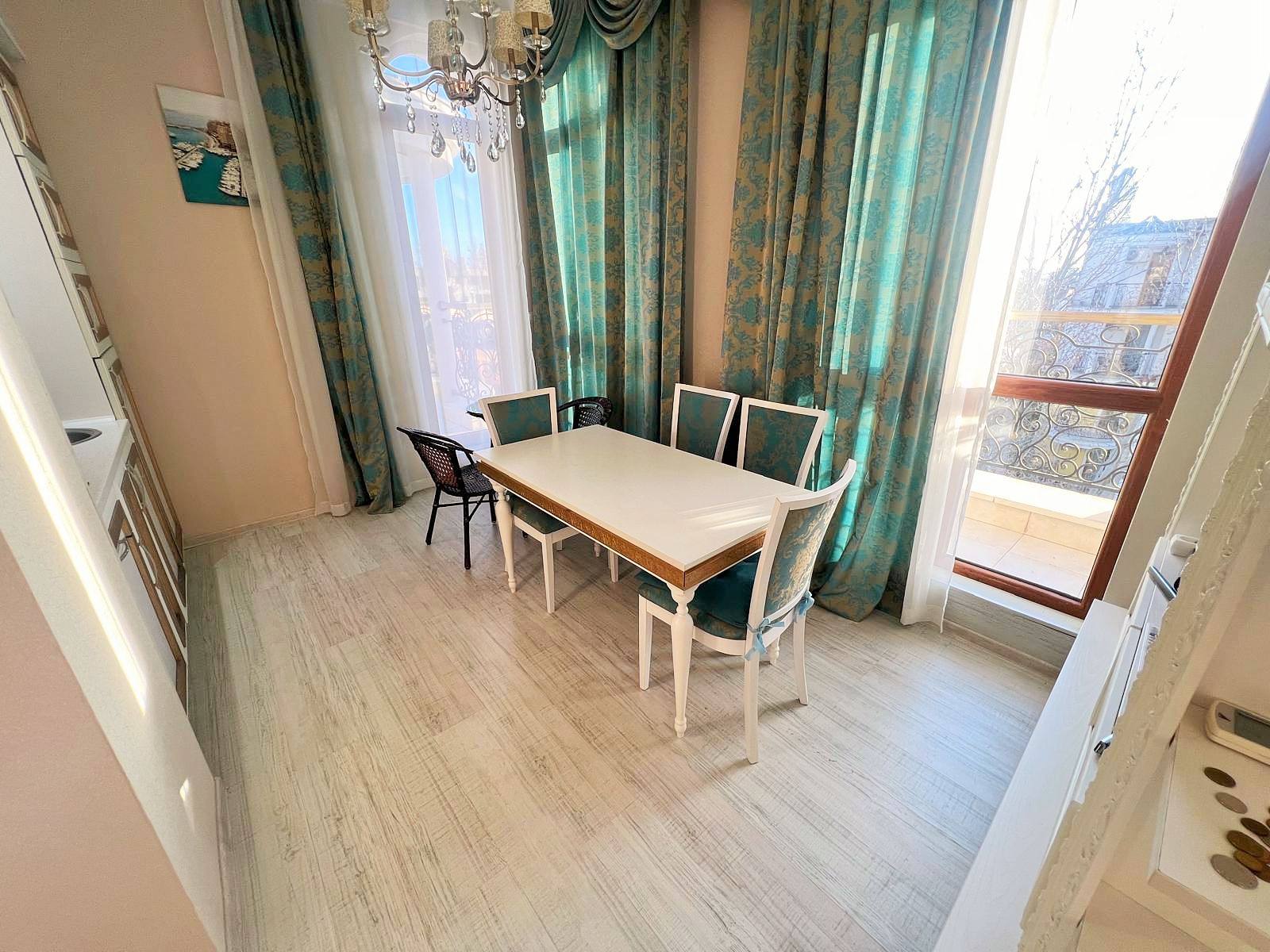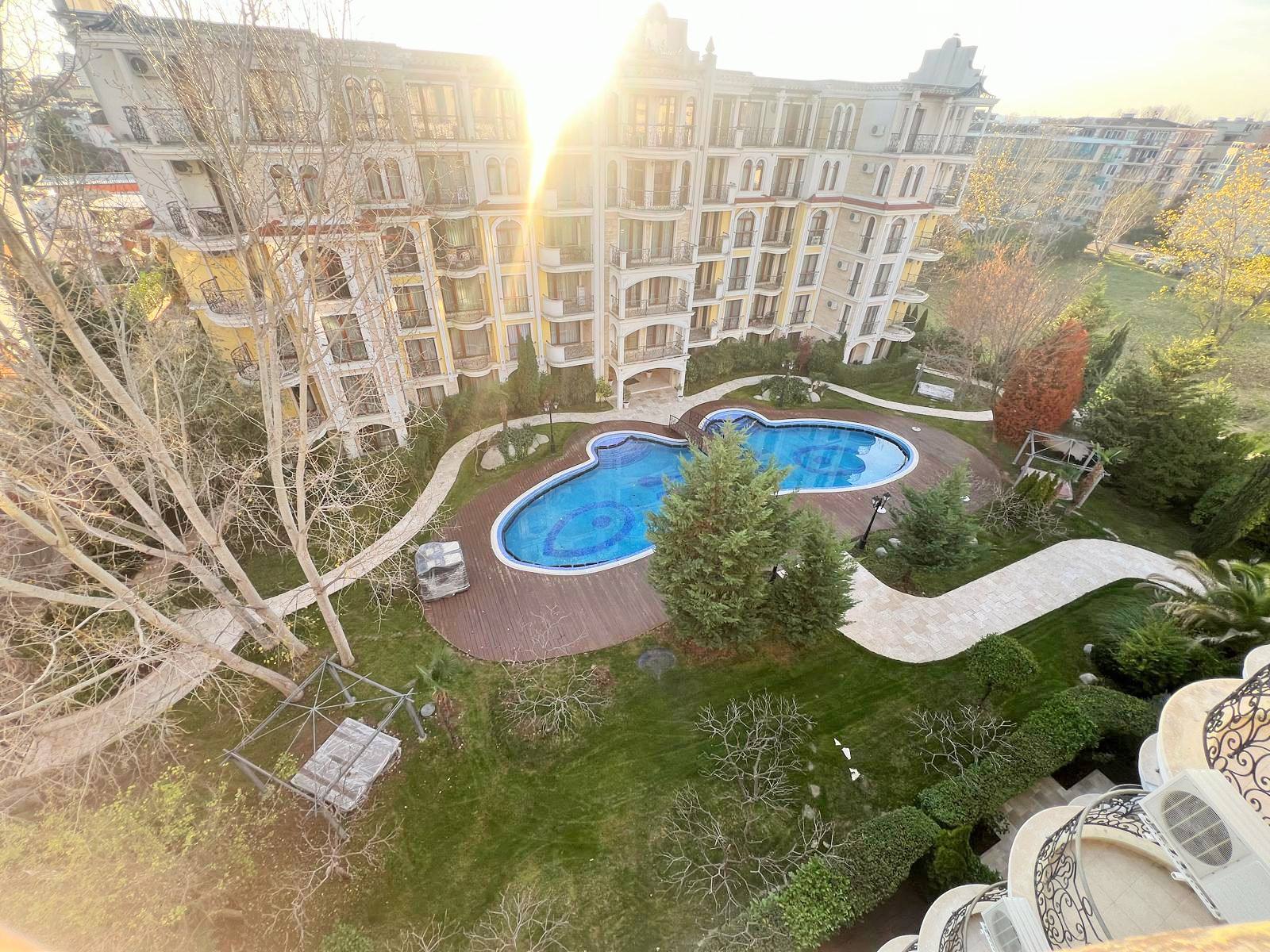 Предлагается просторная двухкомнатная квартира в комплексе Harmony 5, расположенном в тихой части Солнечного Берега. Апартамент на последнем этаже, общая площадь 107 м², цена — 160 000 евро. Планировка позволяет перепланировку в трёхкомнатную квартиру, что увеличивает инвестиционную привлекательность.