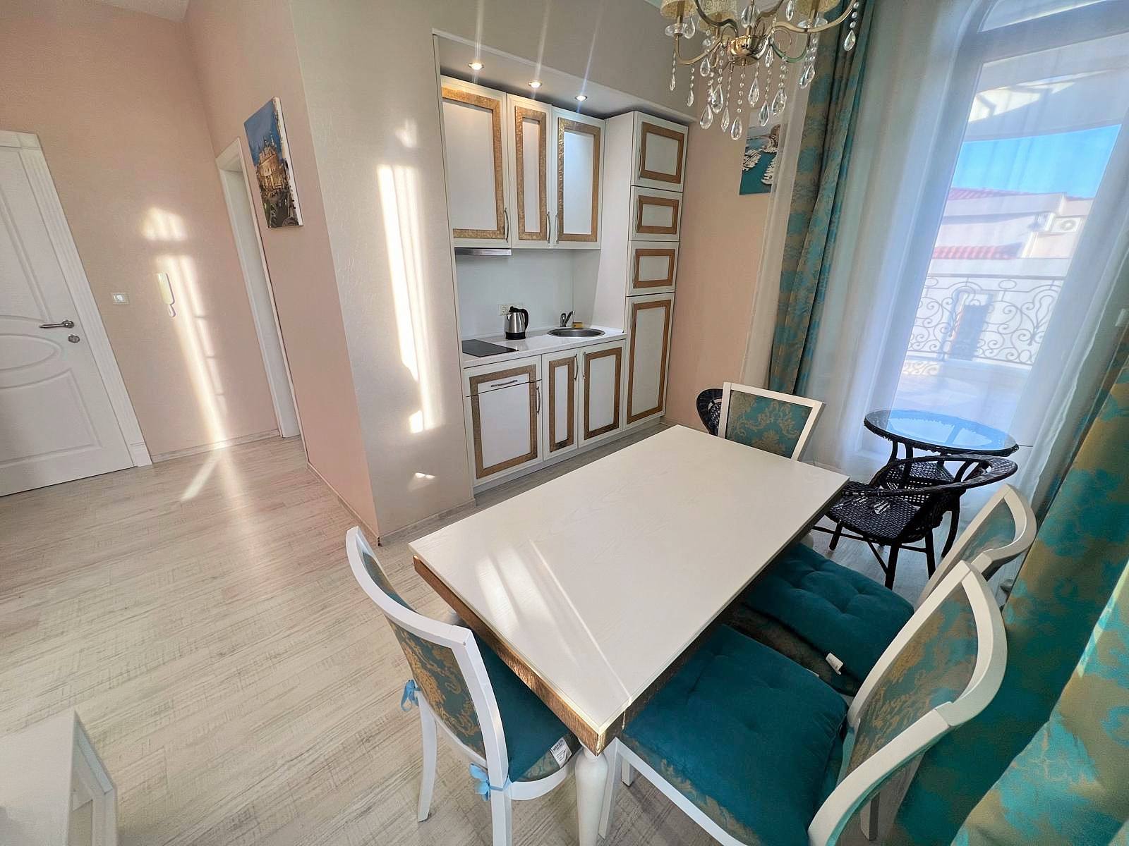 Район с развитой инфраструктурой: супермаркеты, аптеки, кафе и транспортные остановки. Песчаный пляж находится в 300 метрах, что позволяет наслаждаться тишиной и близостью моря.