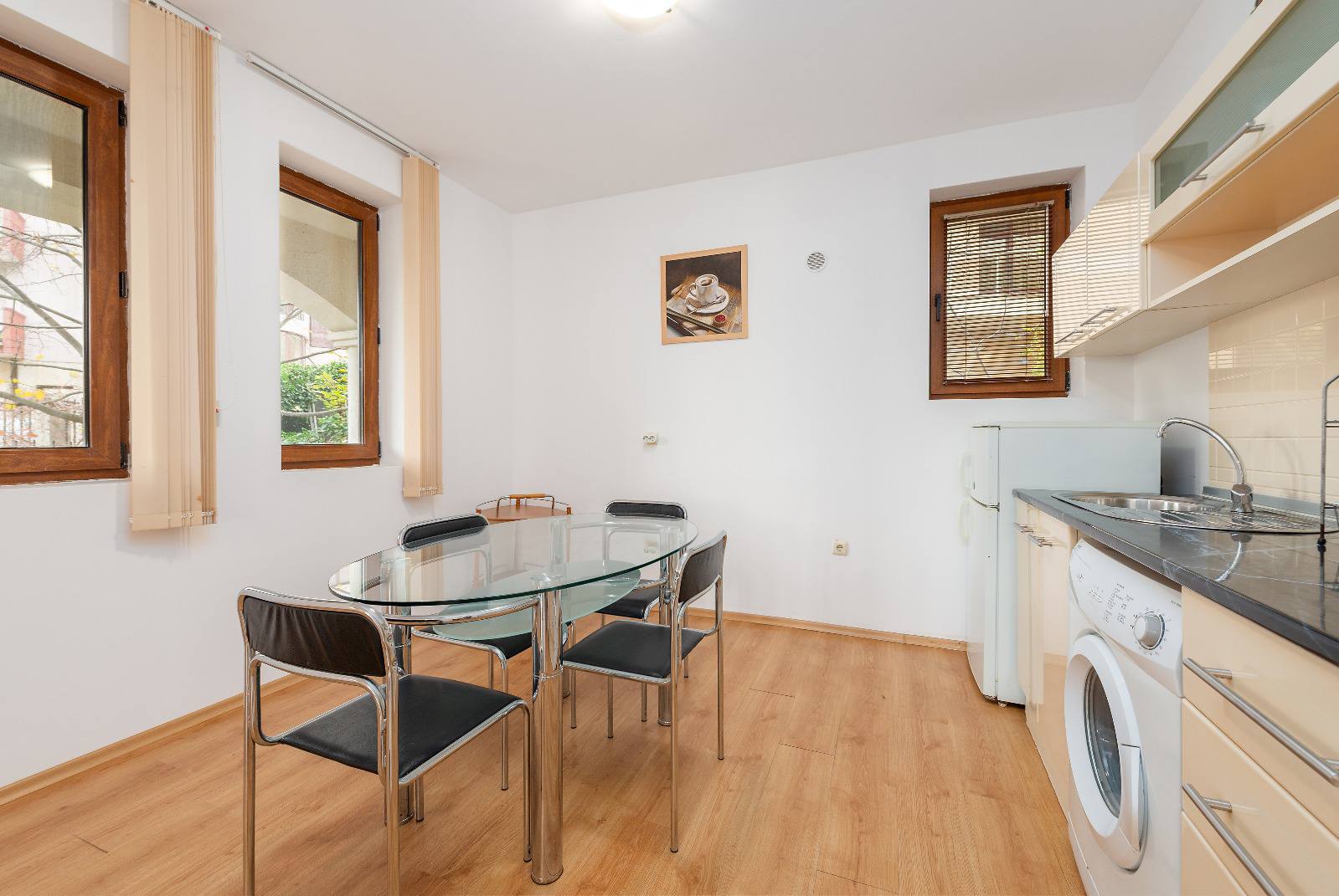 Просторная двухкомнатная квартира в комплексе Chateau del Mar на Солнечном Береге. Апартамент на партерном этаже удобен для круглогодичного проживания, особенно для семей и людей, предпочитающих отсутствие ступенек.