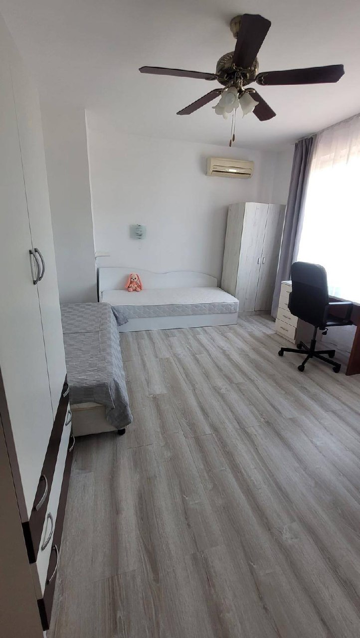 Продается просторная квартира площадью 105 м² на четвертом этаже комплекса Magic Dreams в Святом Власе. Квартира включает две отдельные спальни, гостиную с кухонной зоной, два санузла и застекленный балкон.