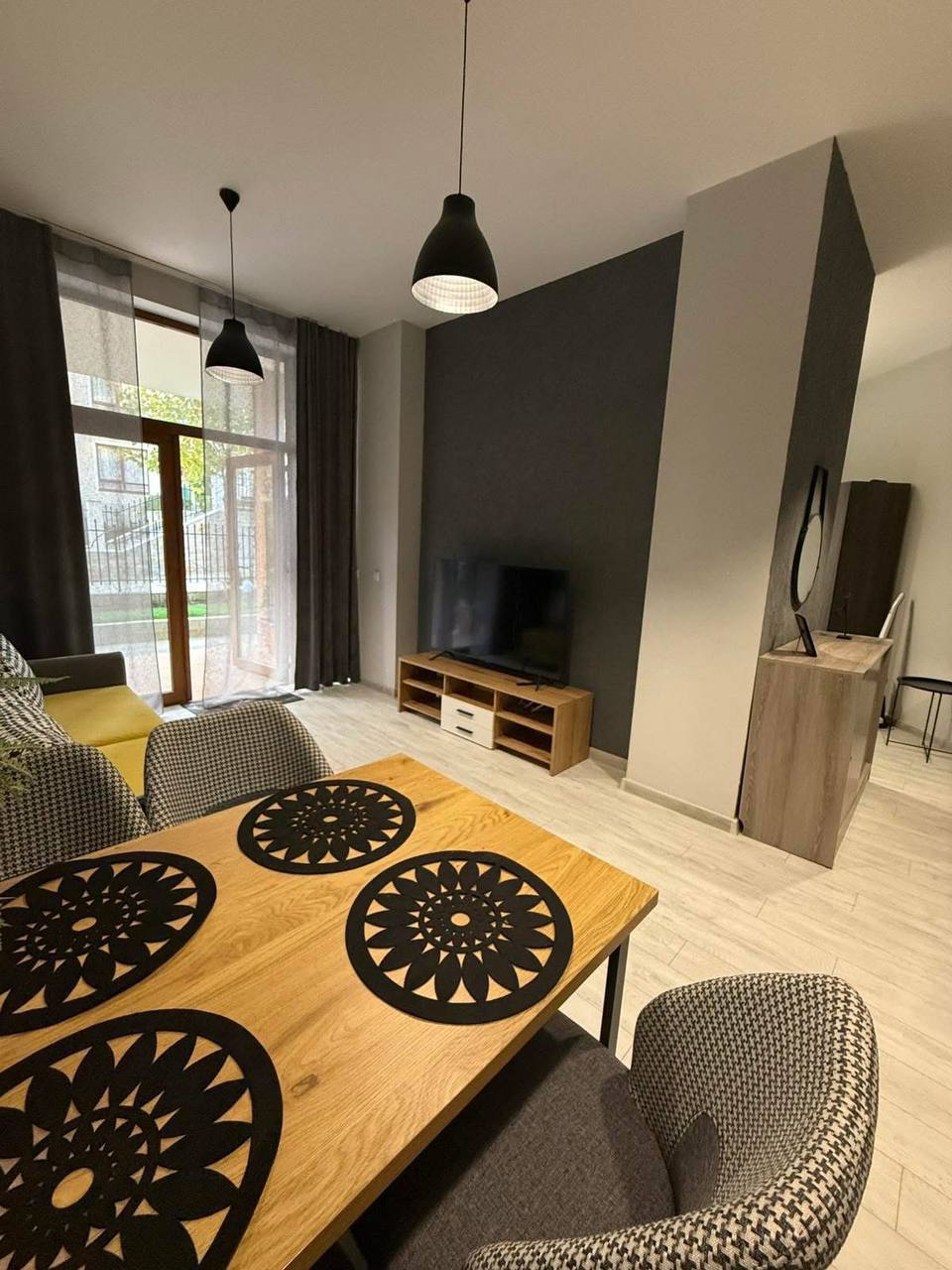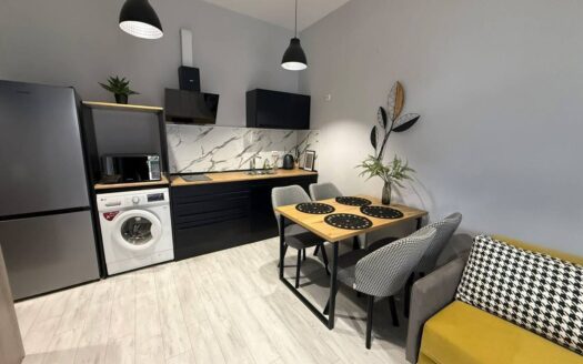 Эта двухкомнатная квартира на первом этаже с отдельным входом предлагает комфорт и приватность, как в частном доме. Высокие потолки (3,5 метра) создают ощущение пространства и света.