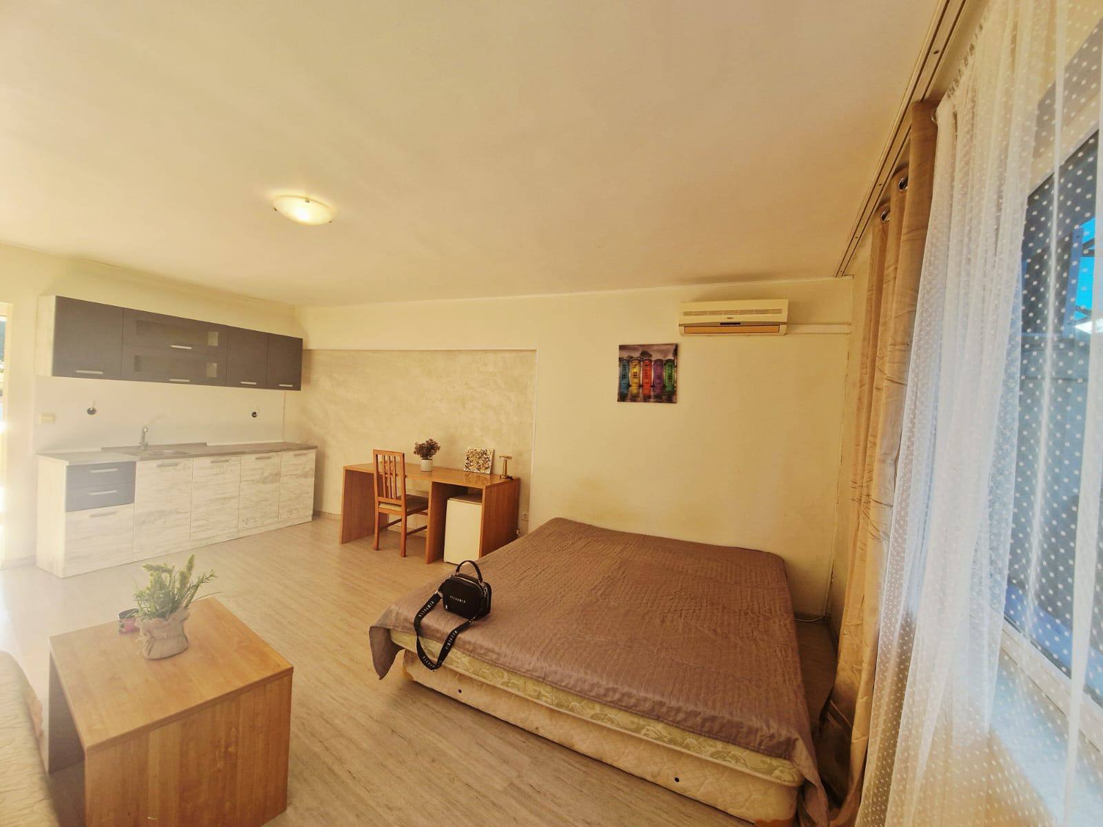 Студия находится на партерном этаже, что удобно для проживания и аренды. Пешком до пляжа можно добраться за 5–7 минут.