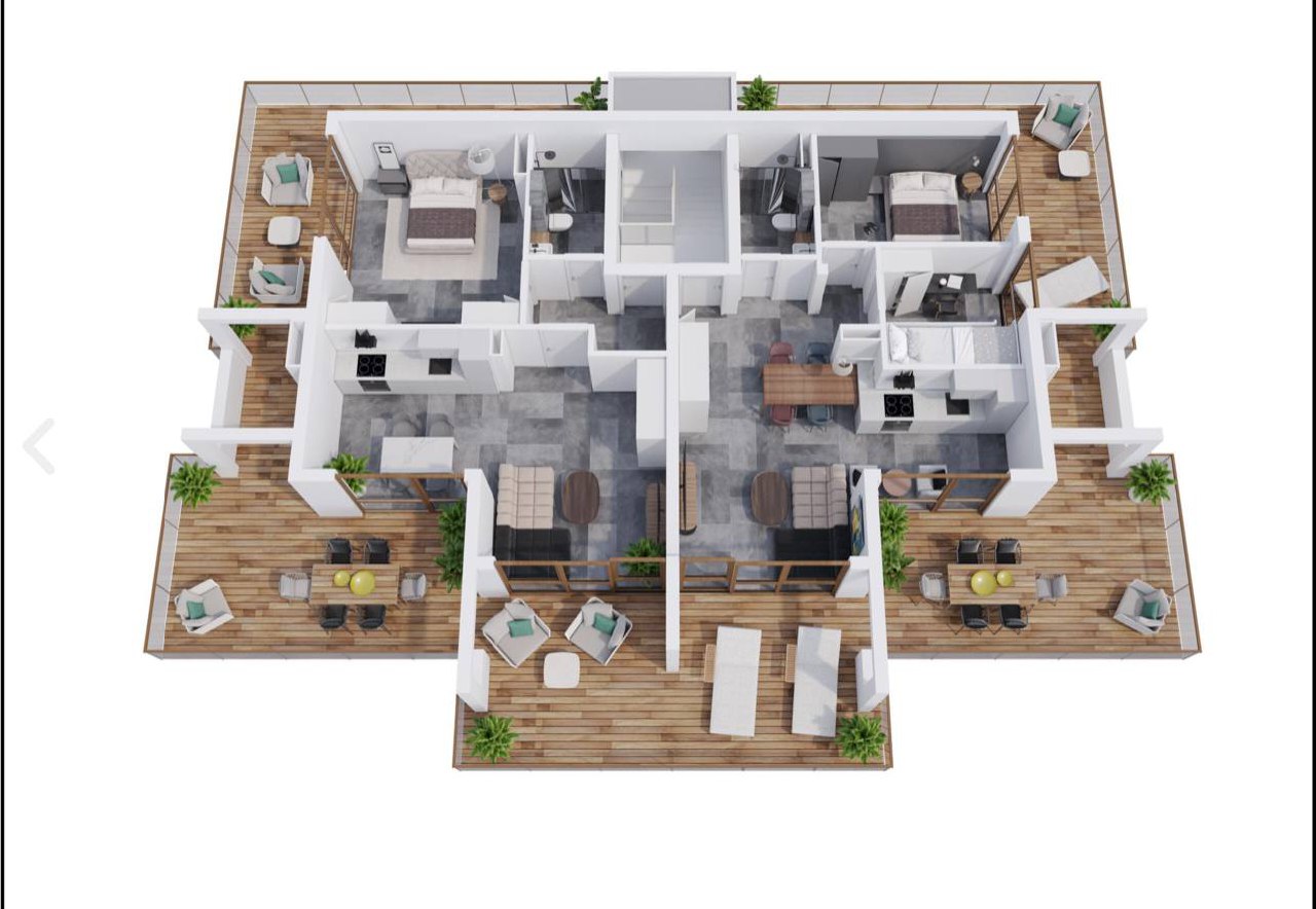 Комплекс состоит из 5 низкоэтажных зданий и включает всего 36 апартаментов: